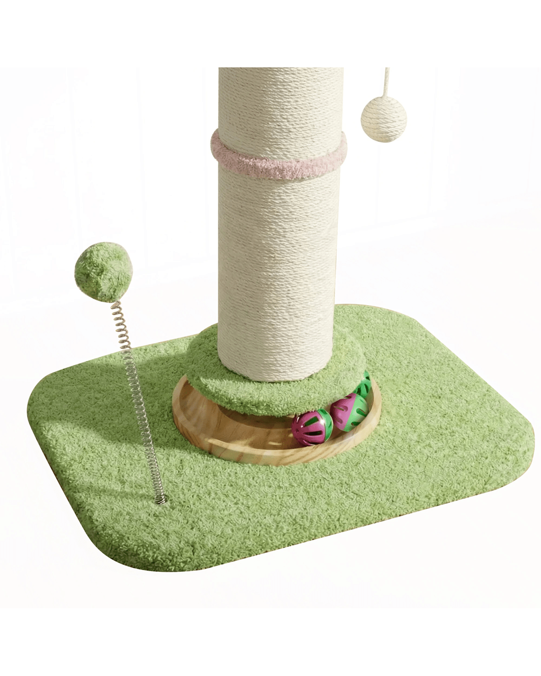 Interactive elements are thoughtfully included, turning this unit into a fun cat tree tower for indoor cats. Hanging teaser balls and rolling balls in the base keep curious cats engaged, even when left alone. The removable, machine-washable top cover makes daily cleaning simple and hygienic.