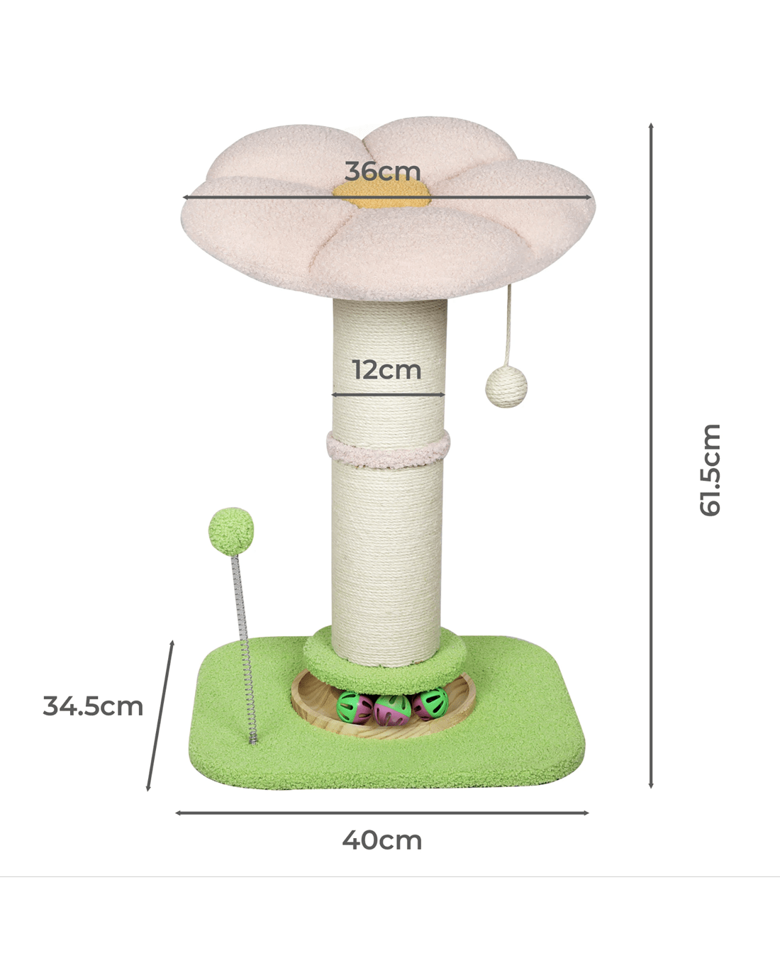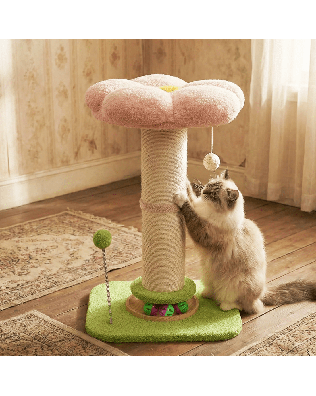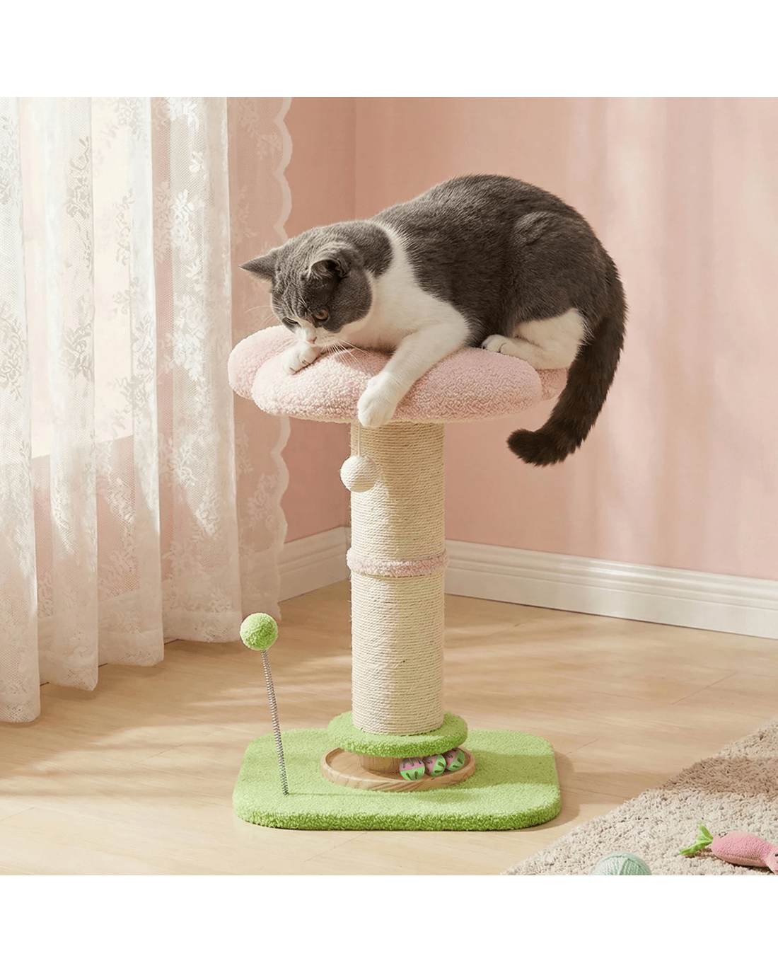 Designed with both comfort and play in mind, the Pawz cat scratching post offers your feline a stylish all-in-one space to rest, scratch and stay entertained. The flower-shaped top platform is covered in soft, skin-friendly plush fabric, creating a warm and inviting lounging spot that cats love to curl up on.