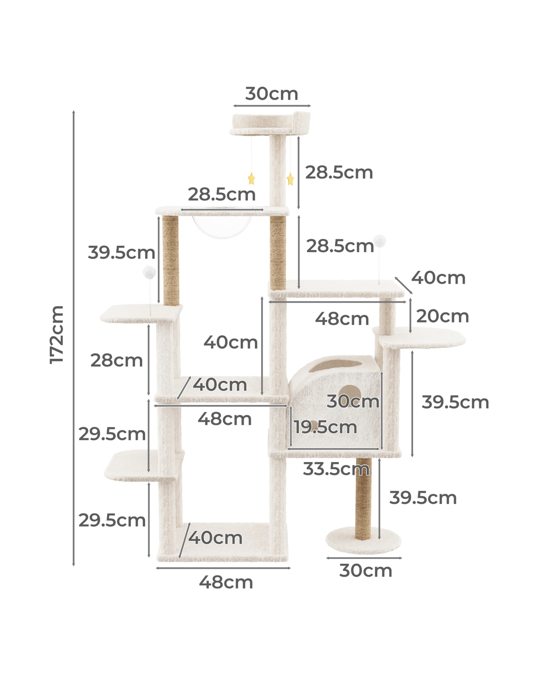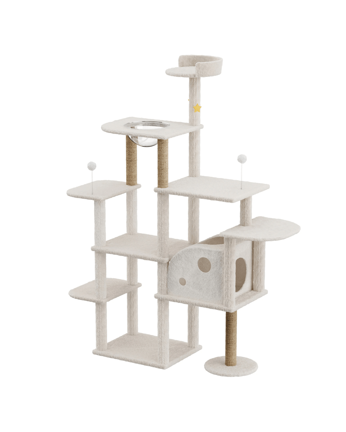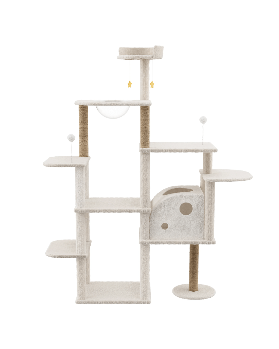 Crafted with high-quality plush lining, the warm bed ensures extra comfort and warmth. The sturdy, scientifically engineered structure with four-point balance and a reinforced base provides stability, preventing wobbling during active play. This all-in-one cat playground meets your cat’s needs for climbing, scratching, jumping, and resting, offering the ultimate experience of fun and relaxation.