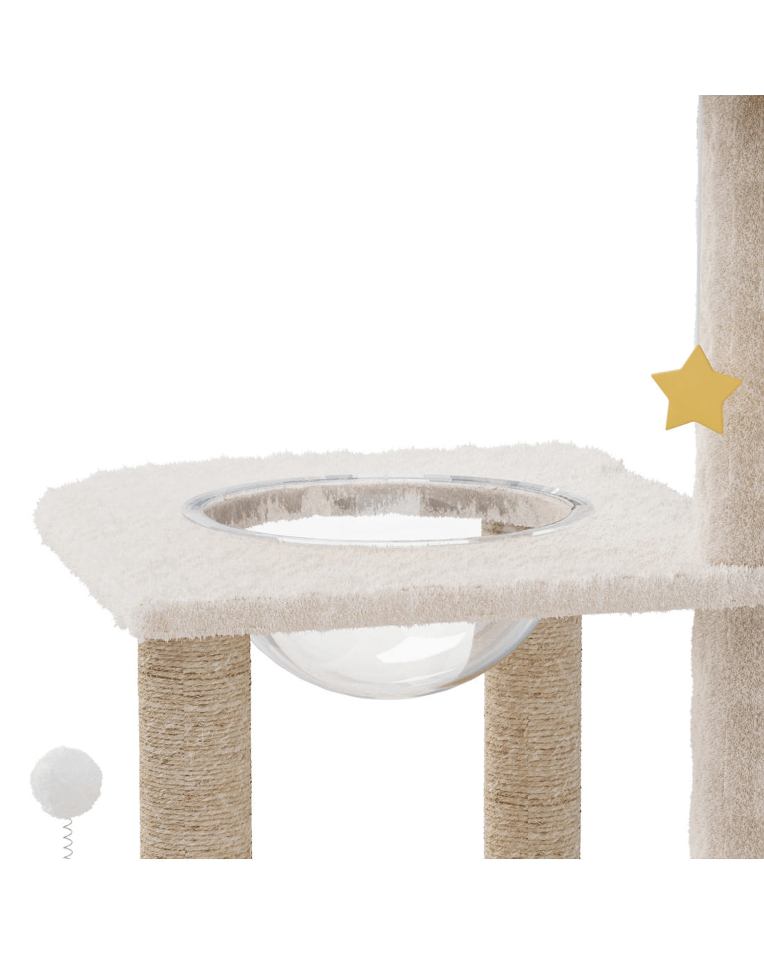 The multi-level climbing platform of the accompanying cat tower satisfies your cat's natural urge to climb and jump. Its spacious design provides ample play areas for exploration, exercise, and staying active in their personal playground. The premium cat tree also features a top observation perch, an interactive dangling ball, and a cozy resting platform, offering the perfect balance of entertainment and relaxation.