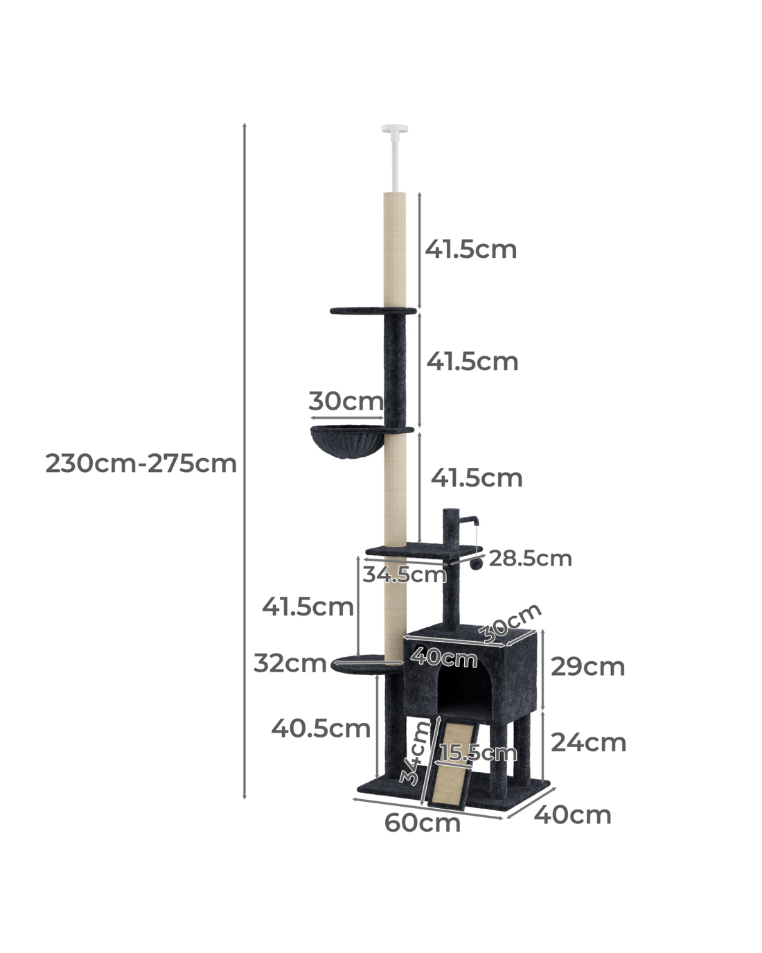 - Dimensions(L x W x H): 40cm x 24cm x 230cm-275cm