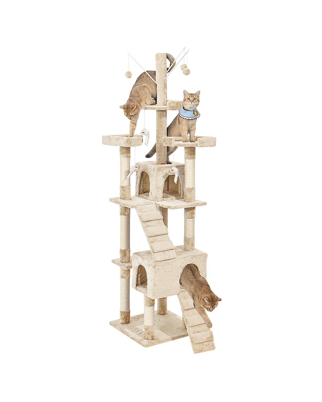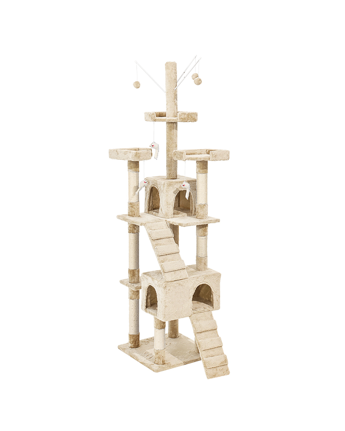 For extra durability and strength, it is made of high-quality MDF material. Equipped with steady and tough poles to withstand all the unpredictable manoeuvres with ease. Crafted with a unique multi-level arrangement to expand the joy and amusement. The entire post is wrapped with natural sisal to tolerate paw scratches, complete freedom for your cat to express its instinct. The surface is covered with luxurious plush cover for a peaceful and relaxing experience. Ample space for you to hang toys, decorations, and many more.