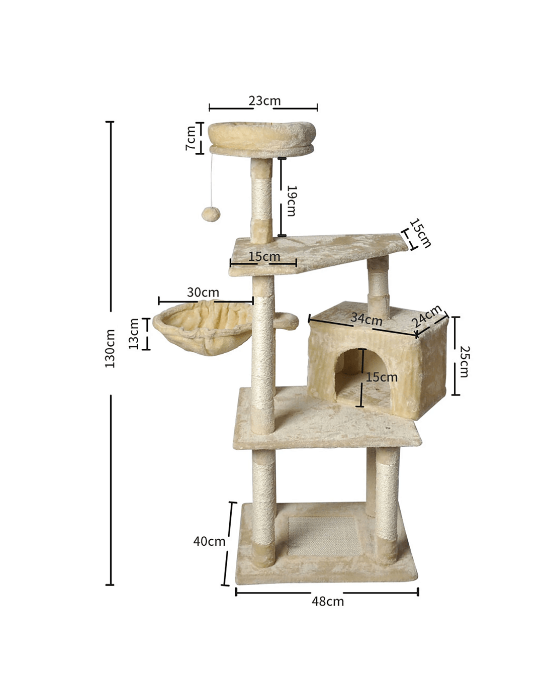 Pawz Cat Tree Toy Scratching Post Scratcher Tower Condo Wooden House Cream 130cm