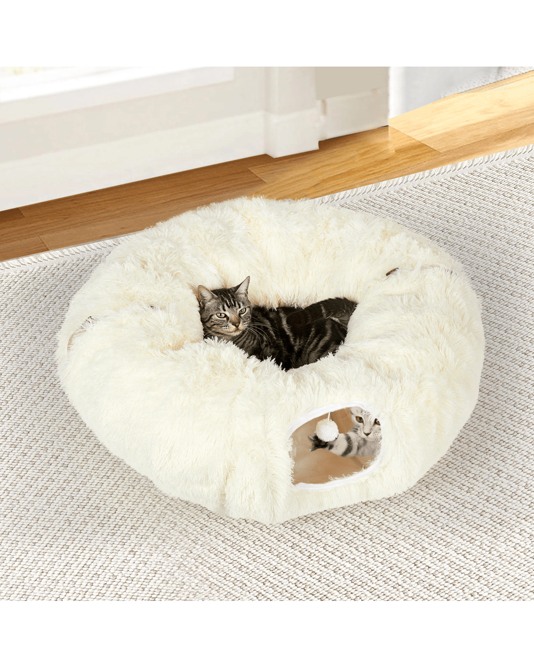 This innovative cat tunnel bed is not just a sleeping place but a world of fun for your furry friend. With multiple ways to play, it keeps your cat entertained for hours.