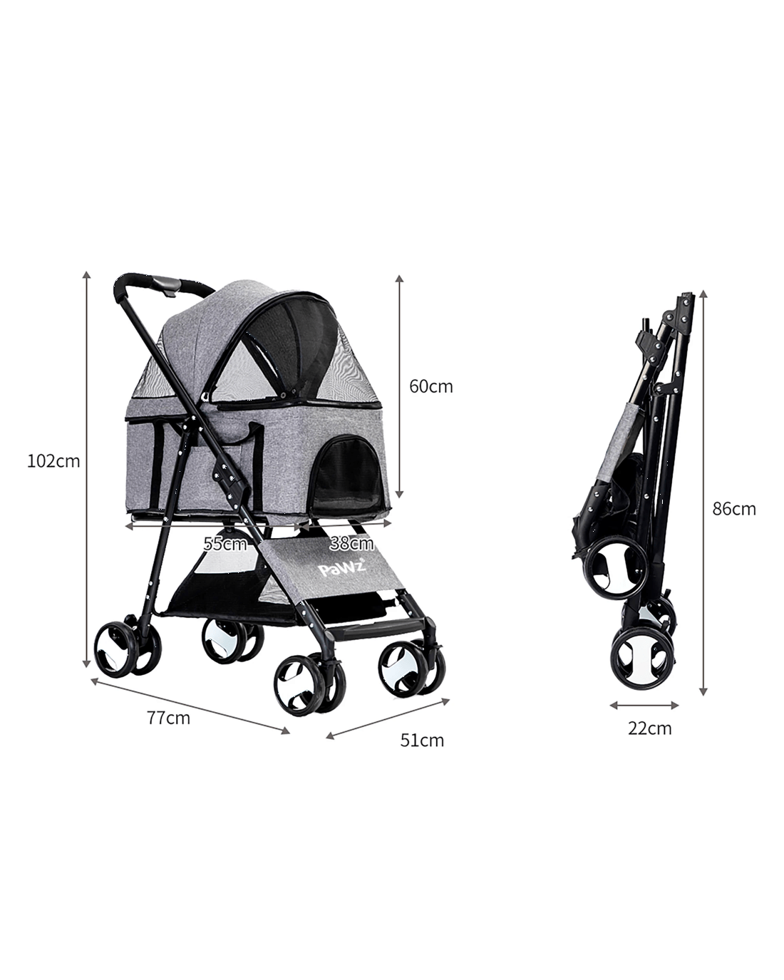 Sold by Sello ProductsPawz Detachable Pet Stroller-Grey