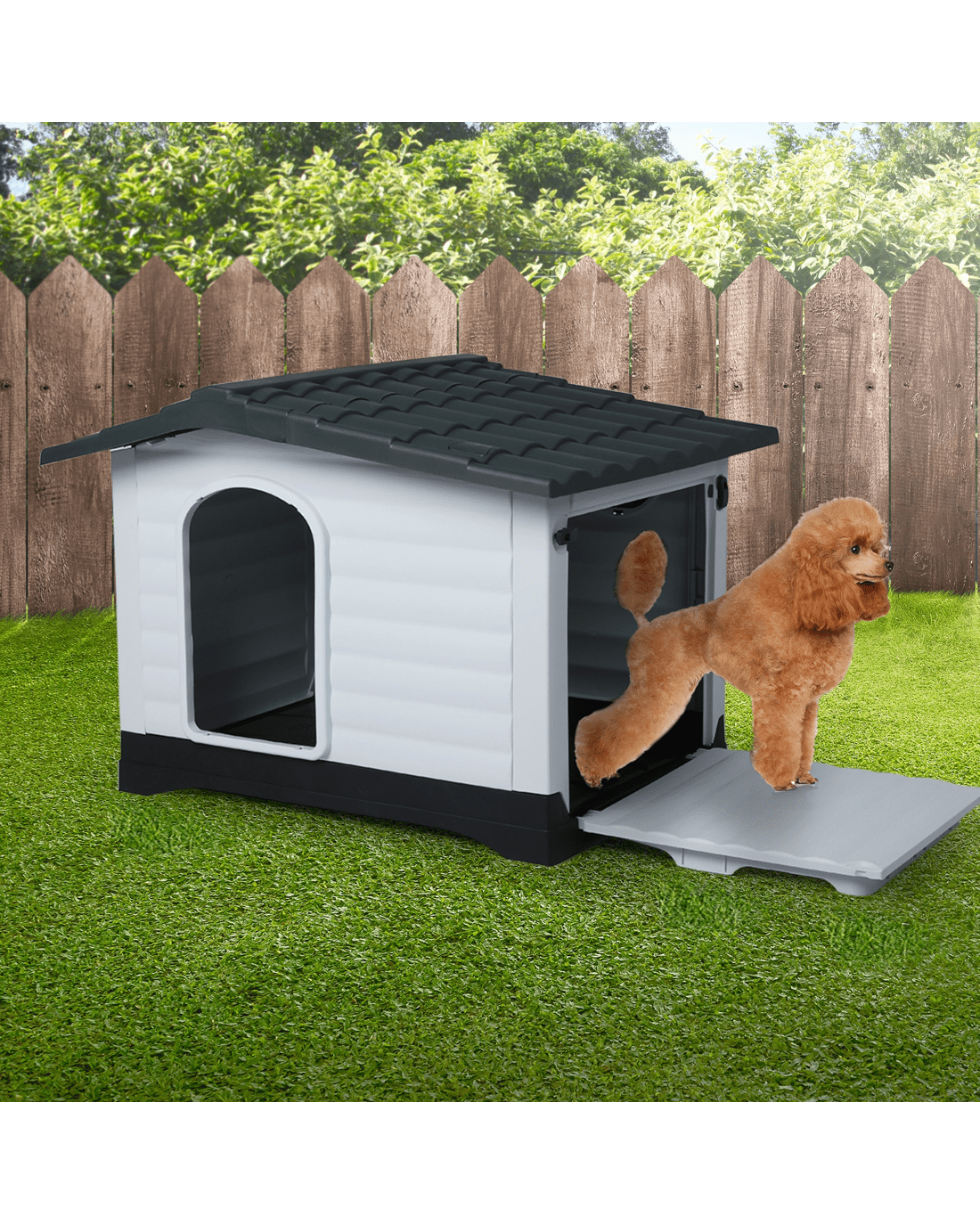 Offer your furry companion a safe and comfortable outdoor retreat with the Pawz Dog Kennel. Crafted from durable, weatherproof plastic, this kennel provides year-round shelter that’s built to endure rain, wind, and sun. Its corrugated roof design and raised floor ensure protection from the elements, while the fold-down entrance allows for easy access and added convenience.