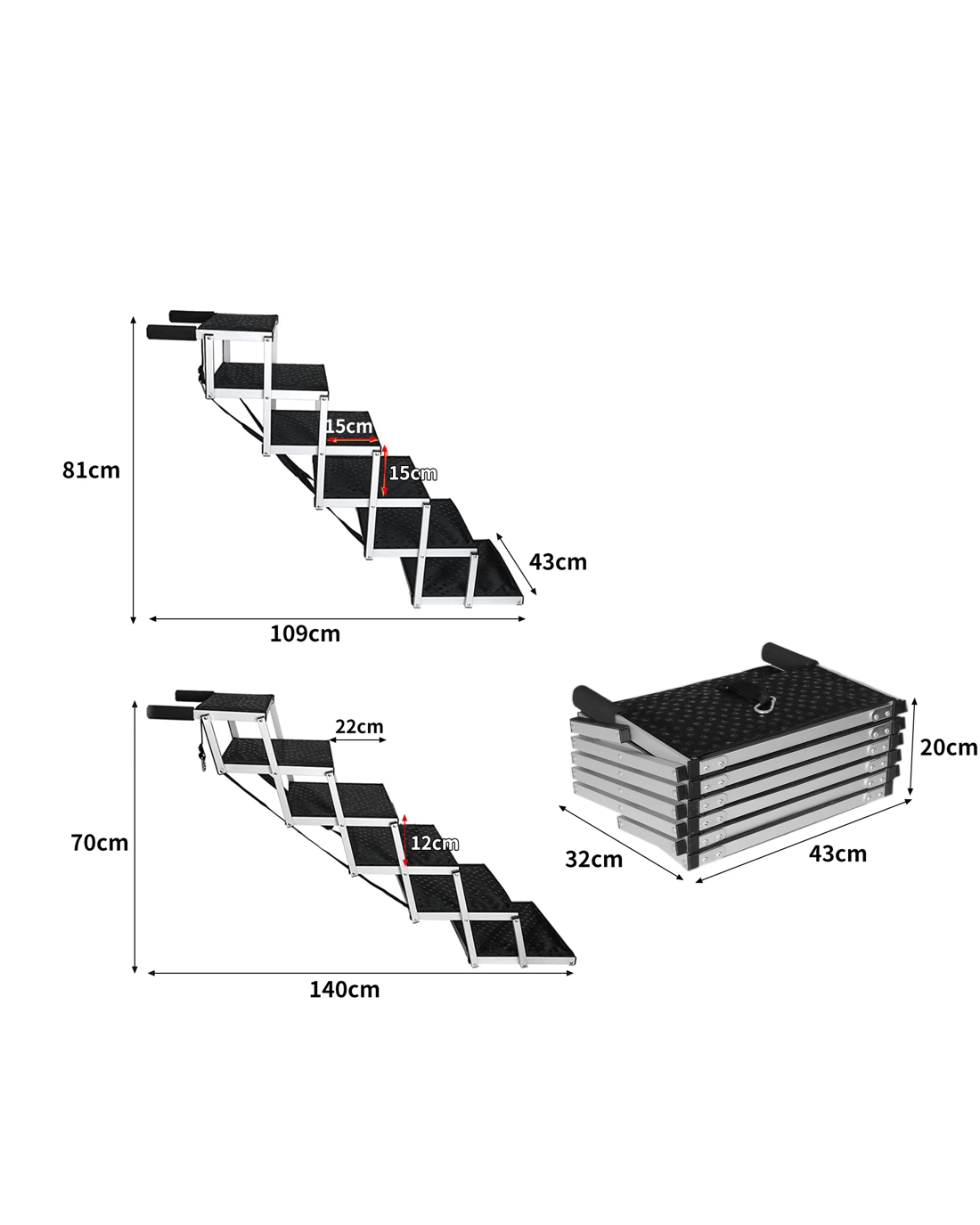 Dimensions (folded – 6 steps): 43cm x 20cm x 32cm (W x D x H)
