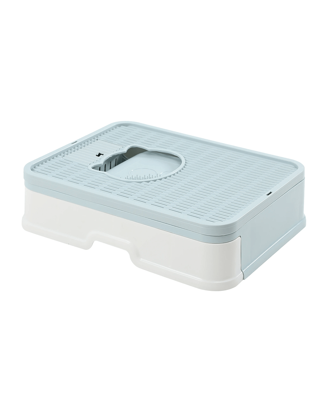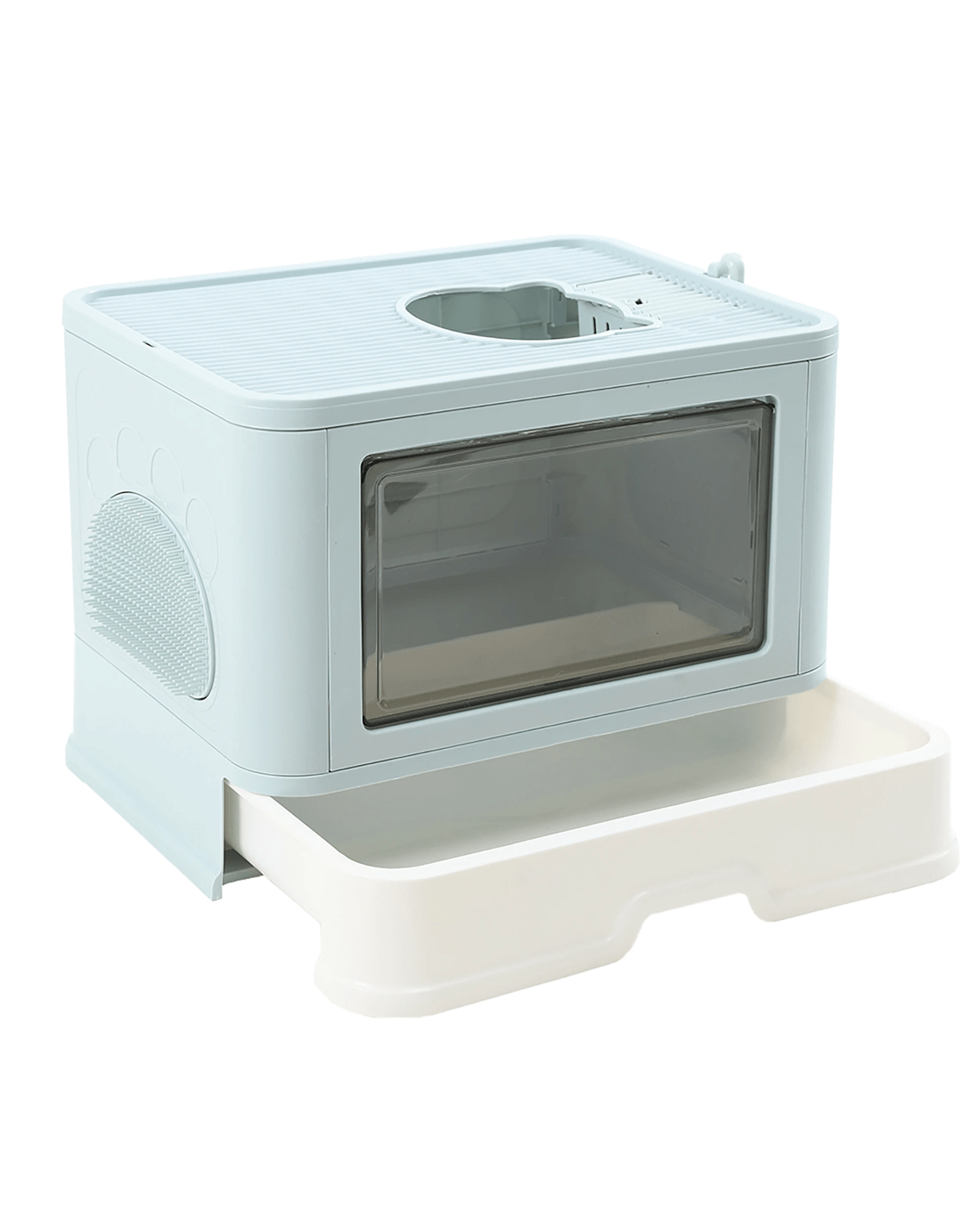 Trained your cat to use a litter box? Superb. That litter still gets kicked everywhere? Sadness. Your new Pawz foldable cat litter box keeps everything inside the box. The perforated roof knocks more litter from their paws, just like a well-designed enclosed kitty toilet.