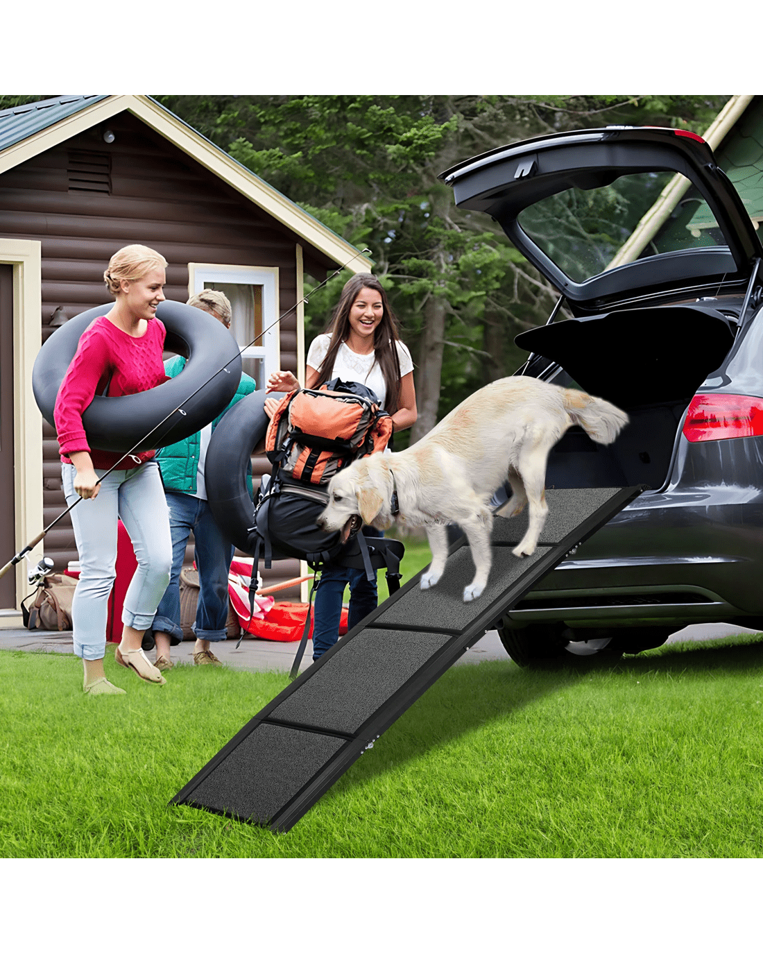 Pawz extra-wide extra long dog ramp, engineered for ultimate safety and comfort for your furry friends. This pet ramp features a high-density framework that ensures maximum durability, making it perfect for daily use and capable of handling the wear and tear of active pets. With its anti-slip design, your pet will enjoy enhanced traction, providing peace of mind as they ascend or descend.