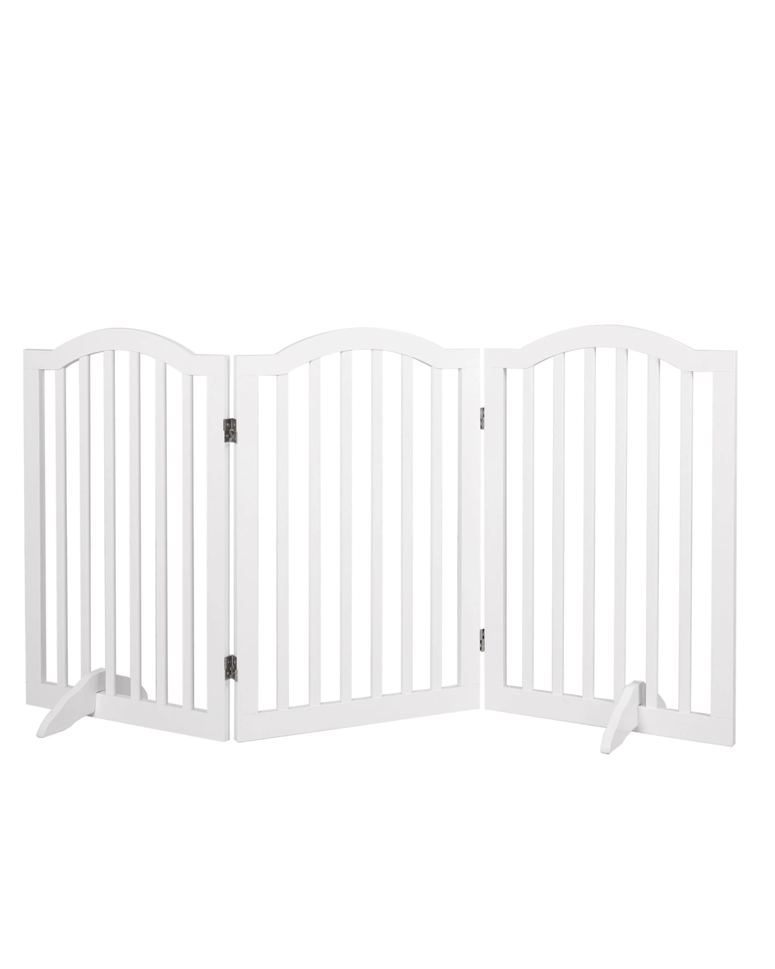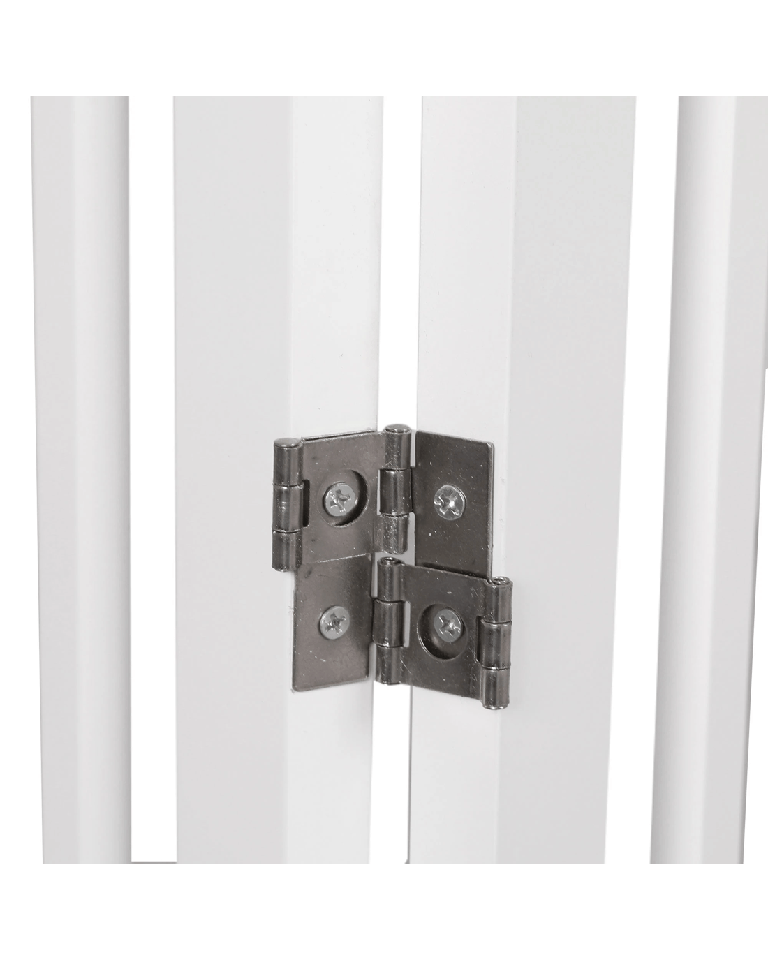 Use the included feet to provide extra stability to your dog gate. Each hinge opens smoothly for your pet gate. Keep each panel at an angle to keep it firmly upright.