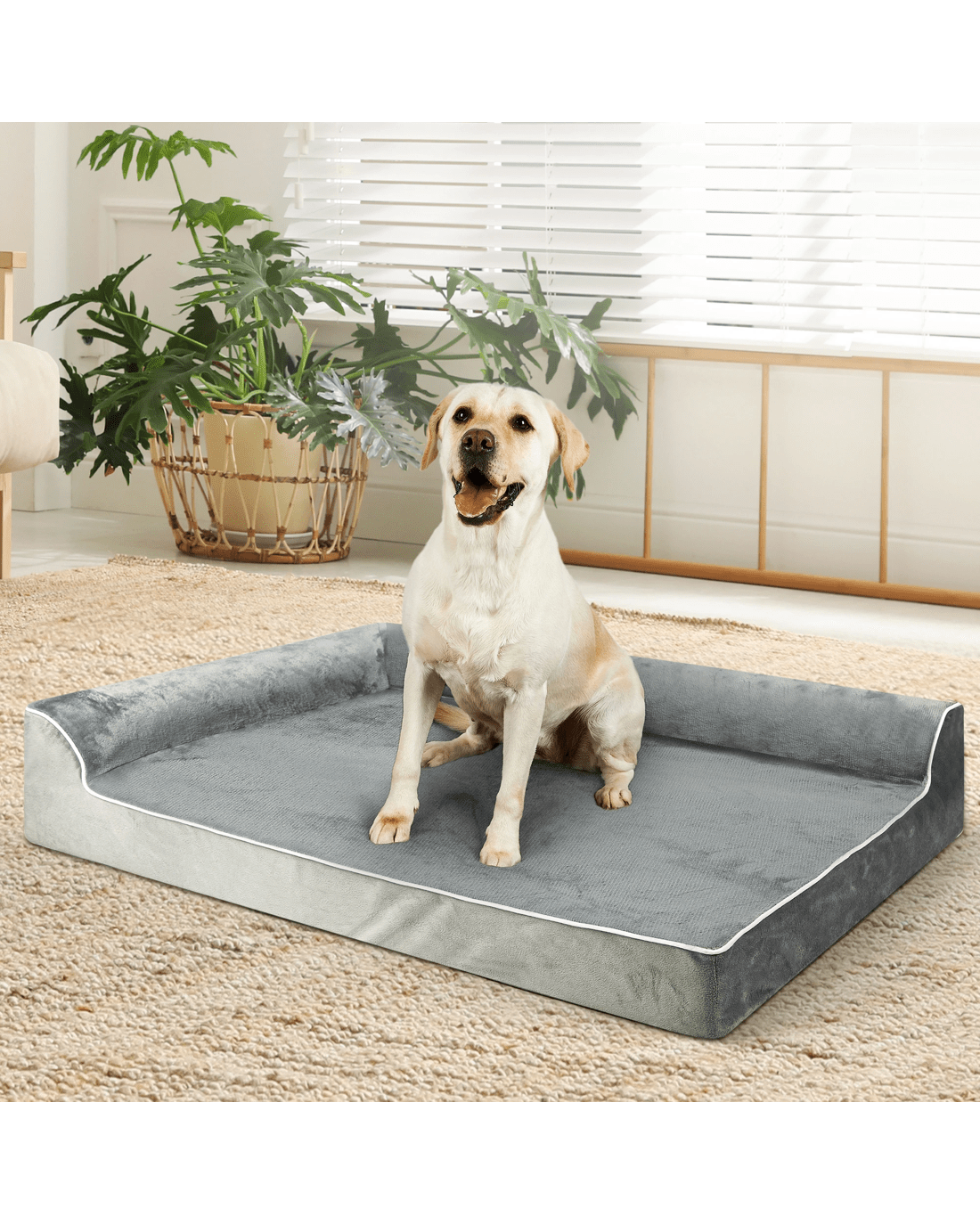 Featuring a unique L-shaped bolster sofa design, this bed offers extra support for your pet’s neck and head, encouraging deep, restorative rest. The surrounding bolsters not only provide a sense of security but also create a cozy spot for your pet to curl up and relax.