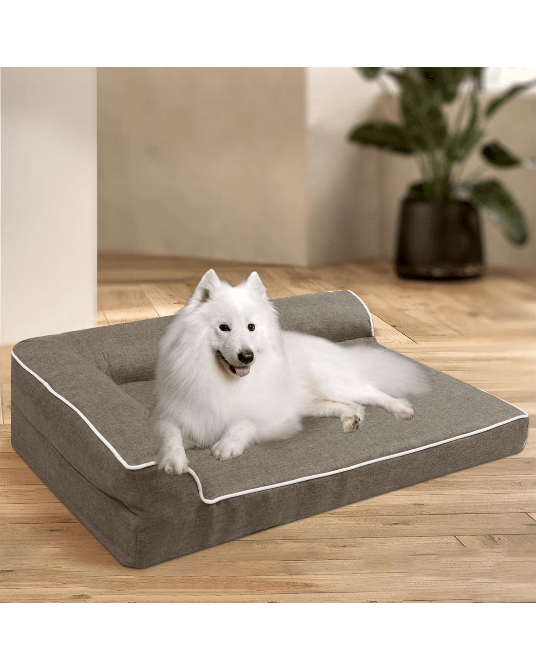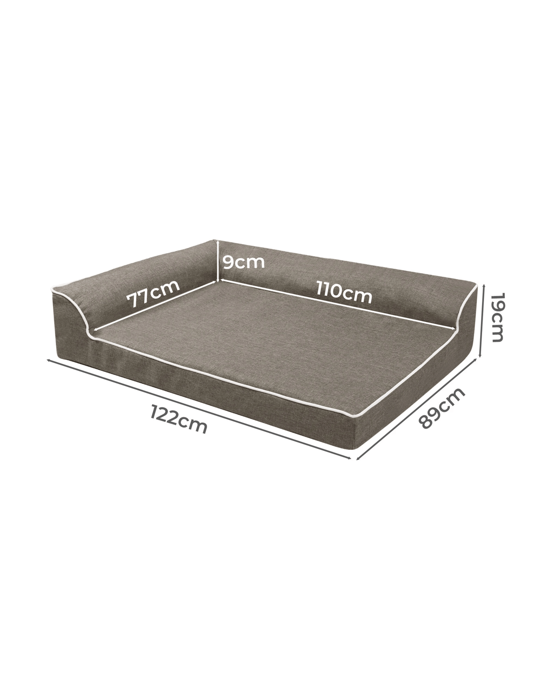 The unique L-shaped bolster sofa bed design offers additional support for your pet's neck and head, promoting deep, restorative sleep. The surrounding bolsters not only provide a sense of security but also allow your pet to snuggle comfortably and relax fully.