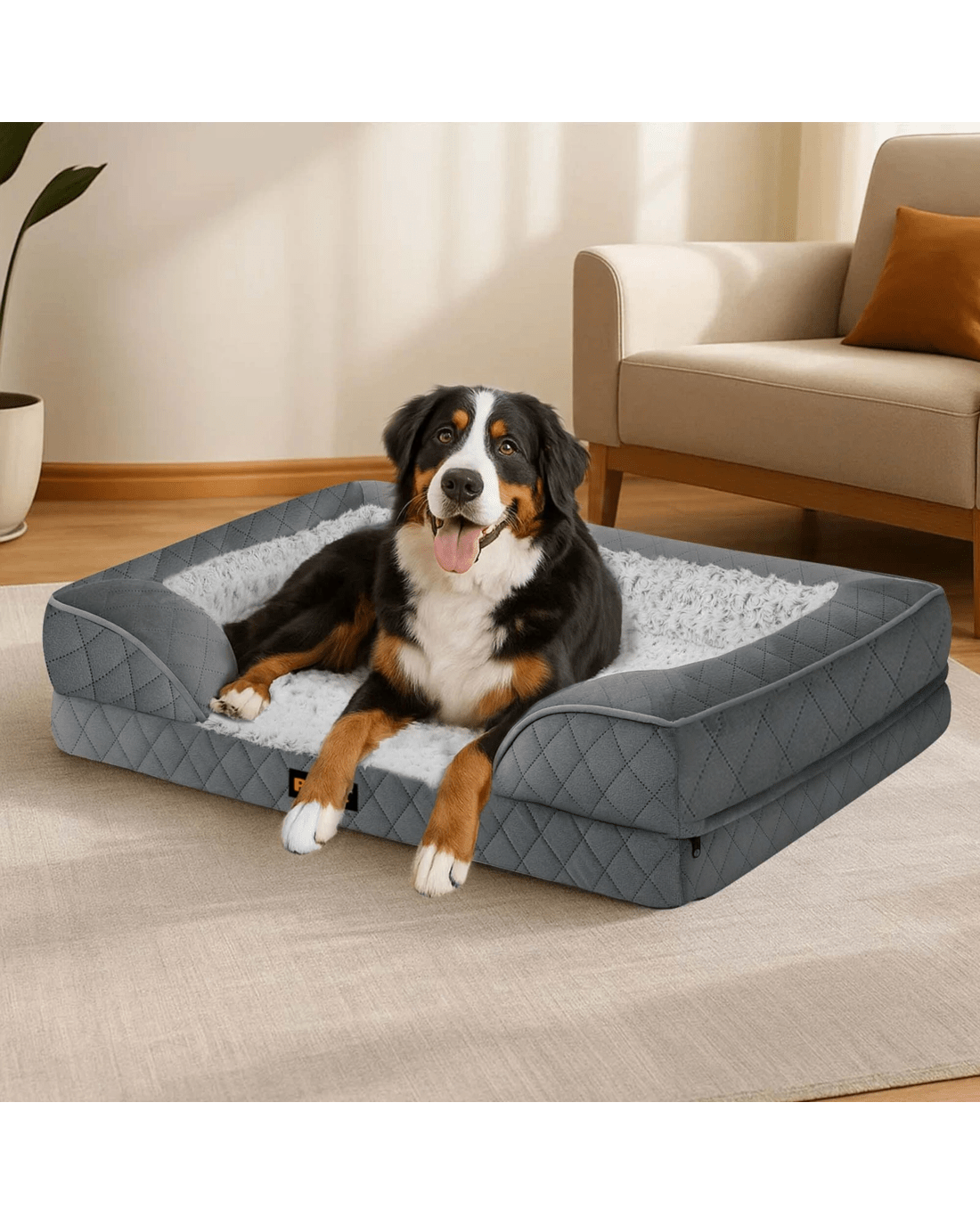 Give your furry friend the ultimate place to unwind with our orthopedic dog bed XL, thoughtfully designed to provide exceptional comfort and joint support. This memory foam dog bed features high-density egg-crate foam that evenly distributes weight to relieve pressure on hips and joints, making it the ideal dog bed foam mattress for aging dogs or those with mobility needs. Whether you're looking for an extra large dog bed or a snug space for medium-large breeds, this medium large dog bed delivers luxurious comfort.