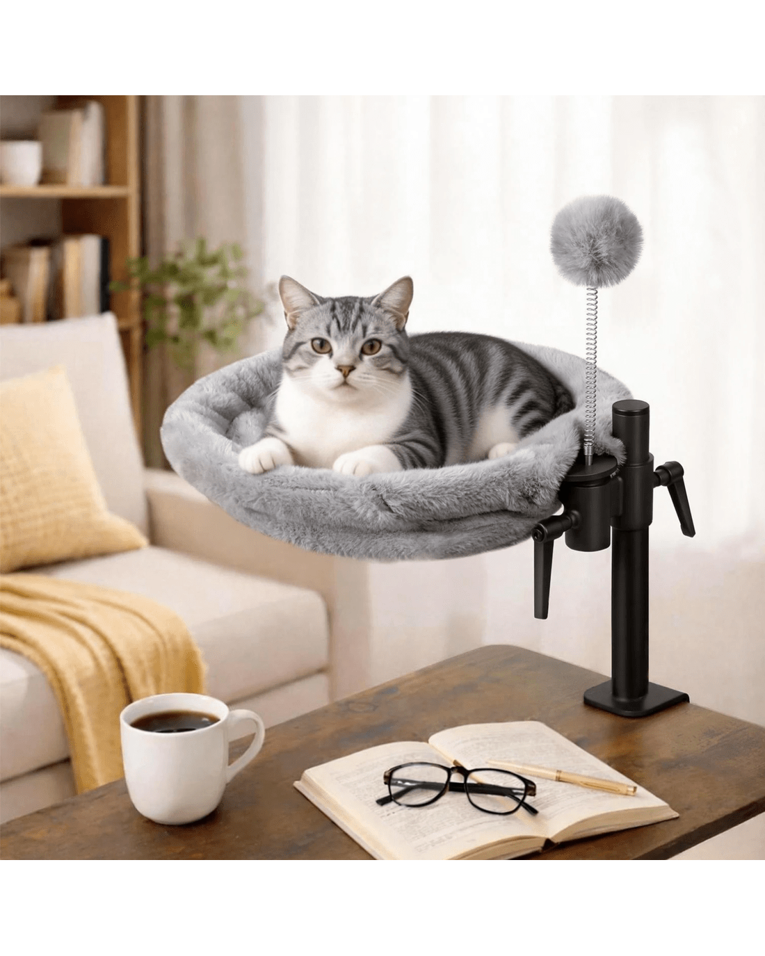 Pawz Pet Bed For Desk,Rabbit Velvet Cloth, 360° Rotatable Adjustable Pet Hammock Bed