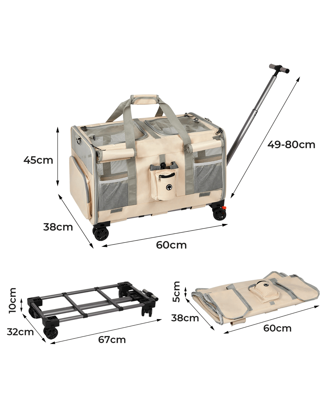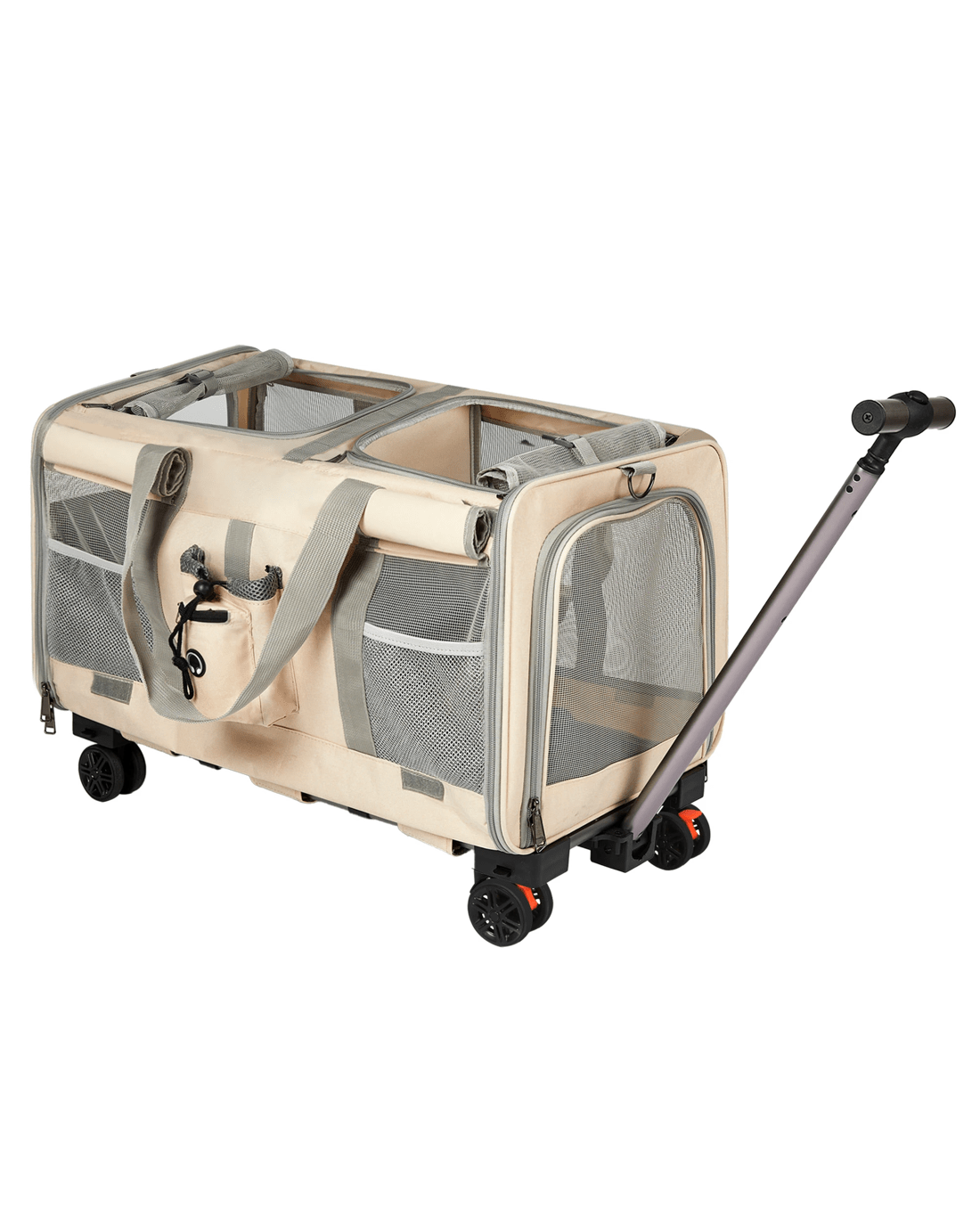 Our innovative pet carrier, designed for modern pet owners who value both functionality and comfort. This versatile carrier features 360-degree swivel wheels for smooth, silent mobility on any terrain, ensuring a hassle-free travel experience.