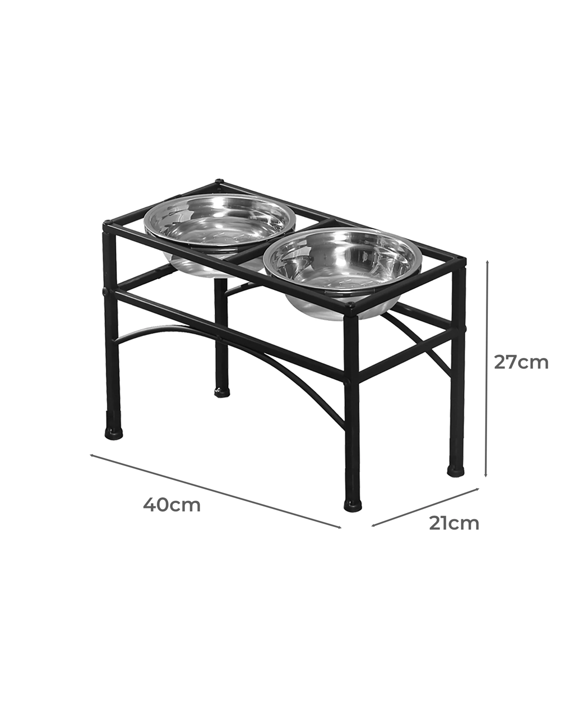 Upgrade your pet's mealtime with this elegant 2-in-1 Pawz double dish dog bowl stand, featuring a modern raised design that blends seamlessly into any home décor. Crafted with a sturdy black iron base, it provides both style and functionality by elevating your pet’s bowls for a more comfortable dining experience. The two high-quality dog bowl stainless steel inserts are removable for easy refilling and cleaning, making mealtime more convenient than ever.