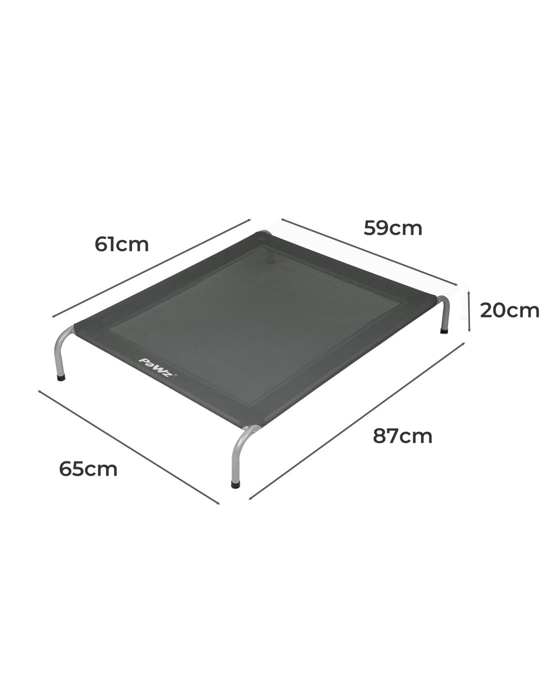 A comfortable and durable resting place for pets, this elevated trampoline pet bed is designed to provide superior support and airflow. The breathable mesh surface helps regulate body temperature, keeping dogs cool and relaxed, while the heavy-duty steel frame ensures long-lasting stability. Perfect for both indoor and outdoor use, this pet bed offers a raised design that protects pets from dirt, moisture, and pests.