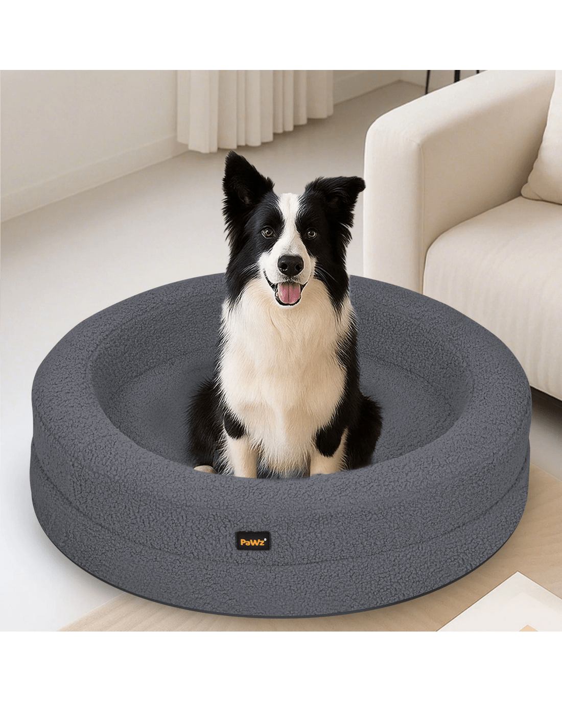 Give your dog the ultimate in comfort and support with the Pawz Waterproof Memory Foam Sherpa Dog Bed. Designed with high-density orthopaedic memory foam, this orthopaedic dog bed helps relieve pressure on joints and muscles, making it ideal for dogs of all ages—especially senior pets, recovering pups, or those with mobility issues. The round bolstered shape is perfect for dogs who love to curl up, offering 360° support with raised sides that gently cradle the head and neck. This calming, nest-like shape also makes it a perfect dog calming bed for anxious pets.
