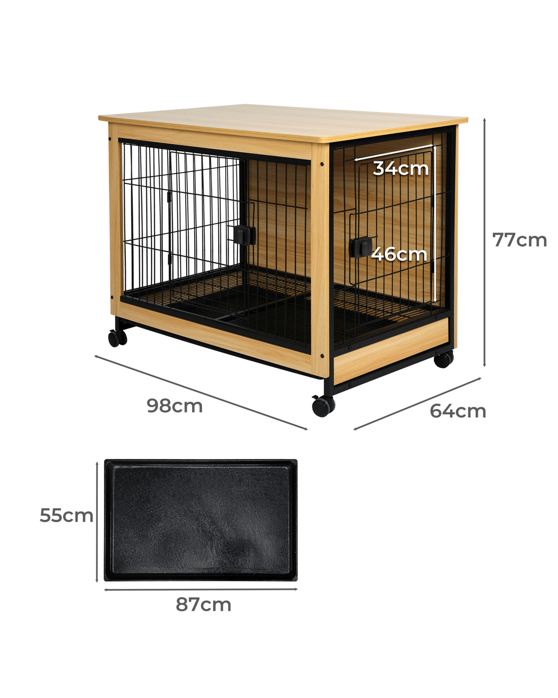 Pawz Wooden Wire Dog Kennel Side End Table Steel Puppy Crate Indoor Pet House XL