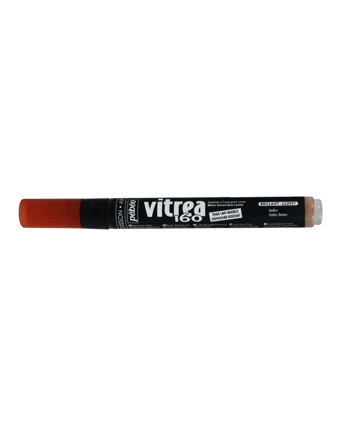 Pebeo Vitrea 160 Glass Paint Markers have a medium, 1.2 mm nib for precise stained glass artworks. To make your design resistant to solvents and common detergents, simply place the decorated glass in a cold oven and set the temperature to 160° C, cooking for 40 minutes thereafter. Vitrea 160 Paint Glass Markers create transparent, lightfast colour and are available in glossy and frosted finishes.