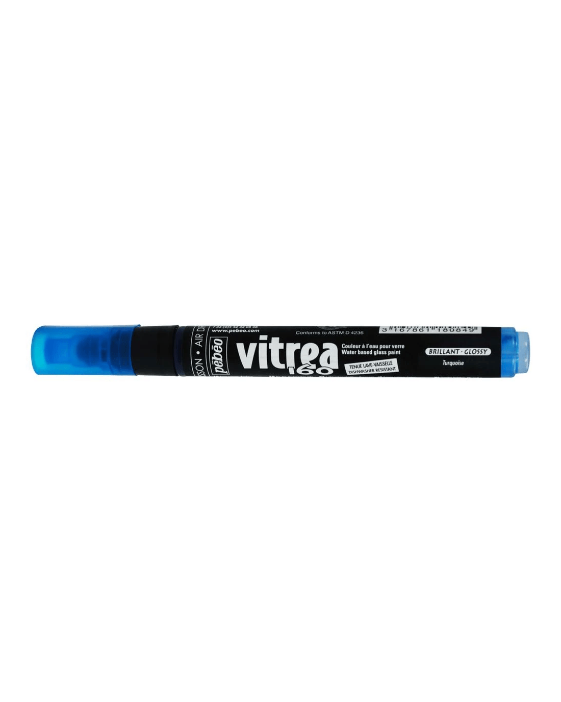 Pebeo Vitrea 160 Glass Paint Markers have a medium, 1.2 mm nib for precise stained glass artworks. To make your design resistant to solvents and common detergents, simply place the decorated glass in a cold oven and set the temperature to 160° C, cooking for 40 minutes thereafter. Vitrea 160 Paint Glass Markers create transparent, lightfast colour and are available in glossy and frosted finishes.