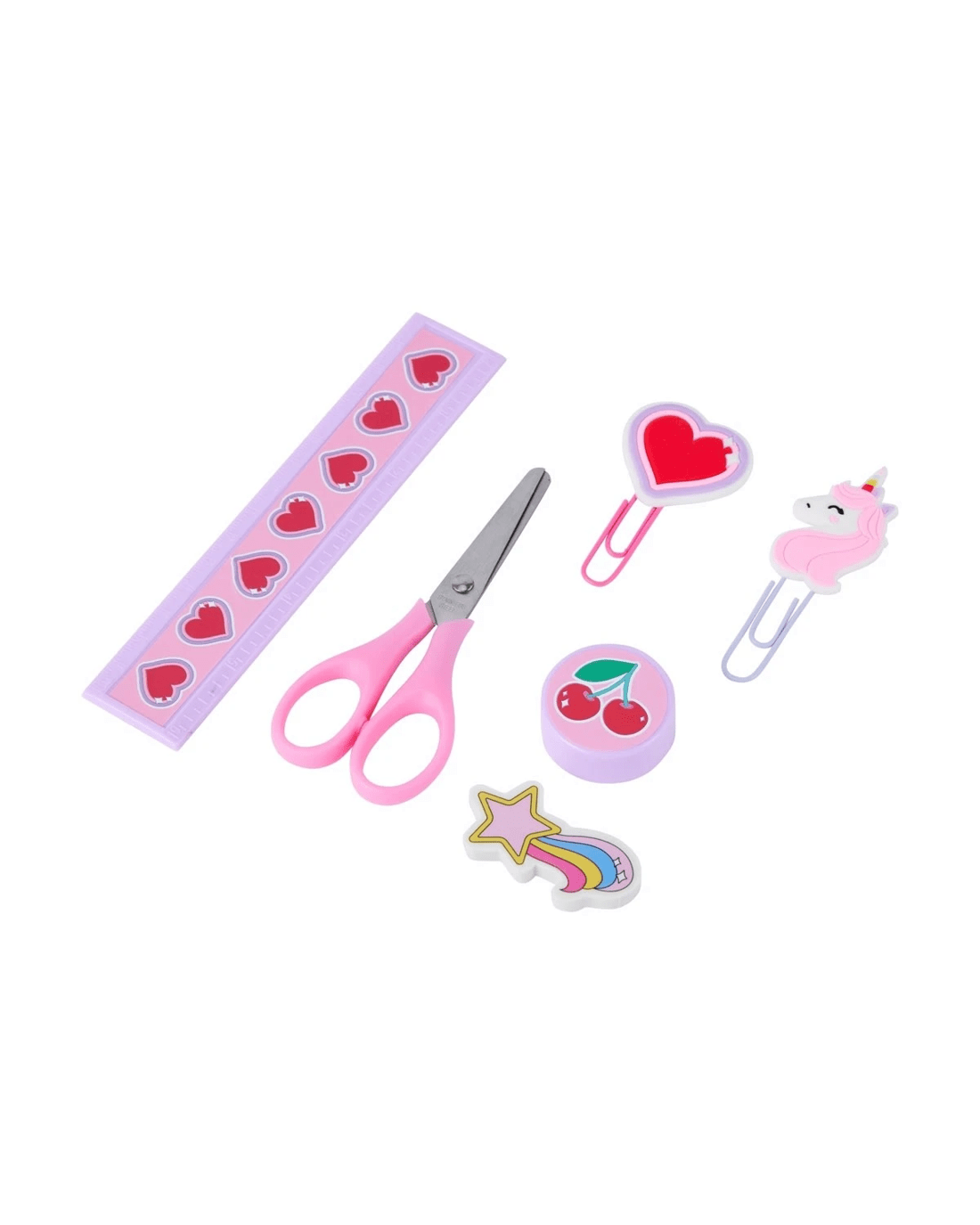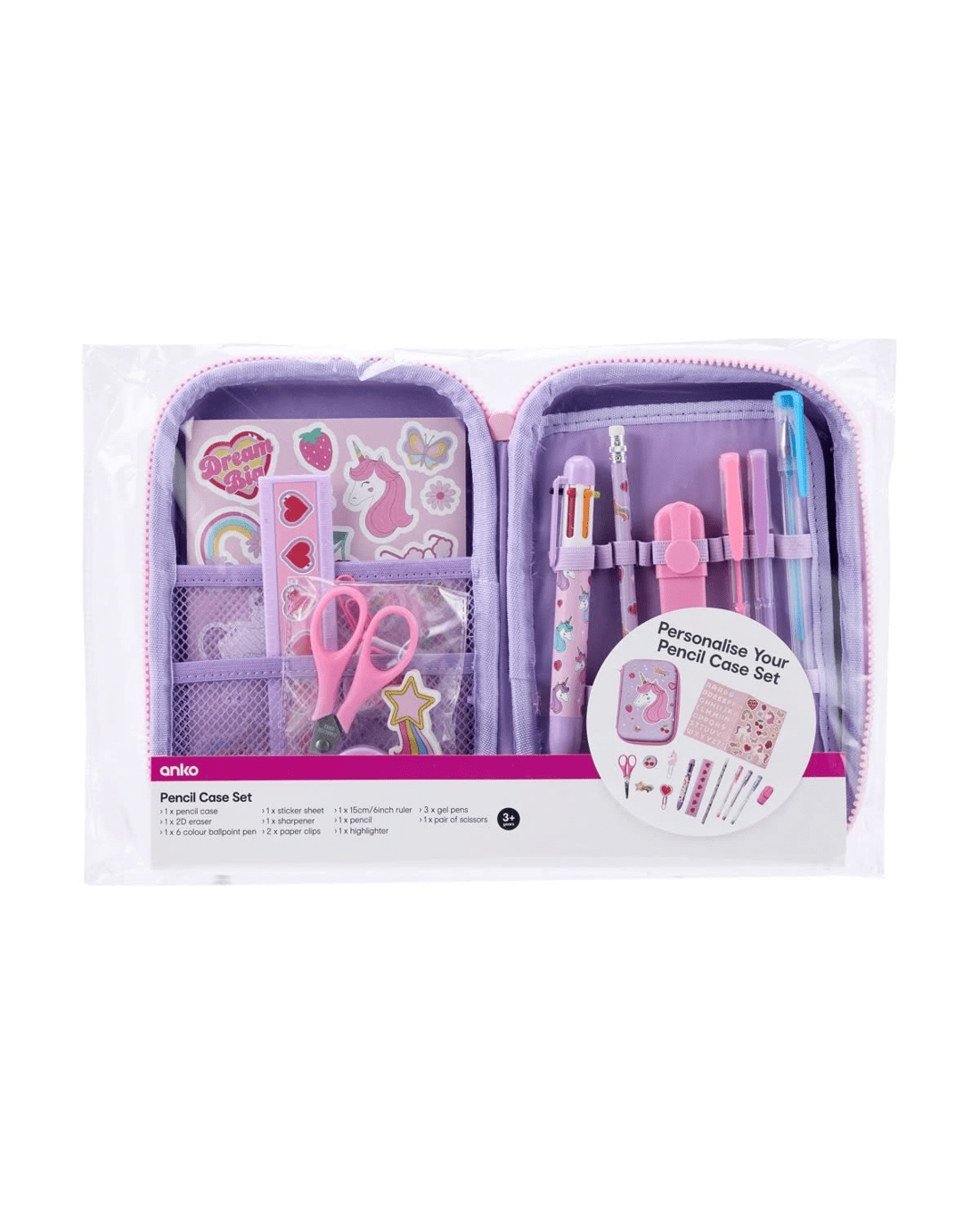 - Includes 1 x pencil case, 1 x 2D eraser, 1 x 6 colour ballpoint pen, 2 x paper clips, 1 x sticker sheet, 1 x sharpener, 1 x ruler, 3 x gel pens, 1 x pencil, 1 x pair of scissors and 1 x highlighter