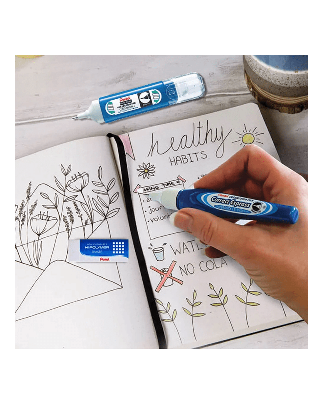 - The liquid dries quickly and creates a flat surface for rewriting over errors.