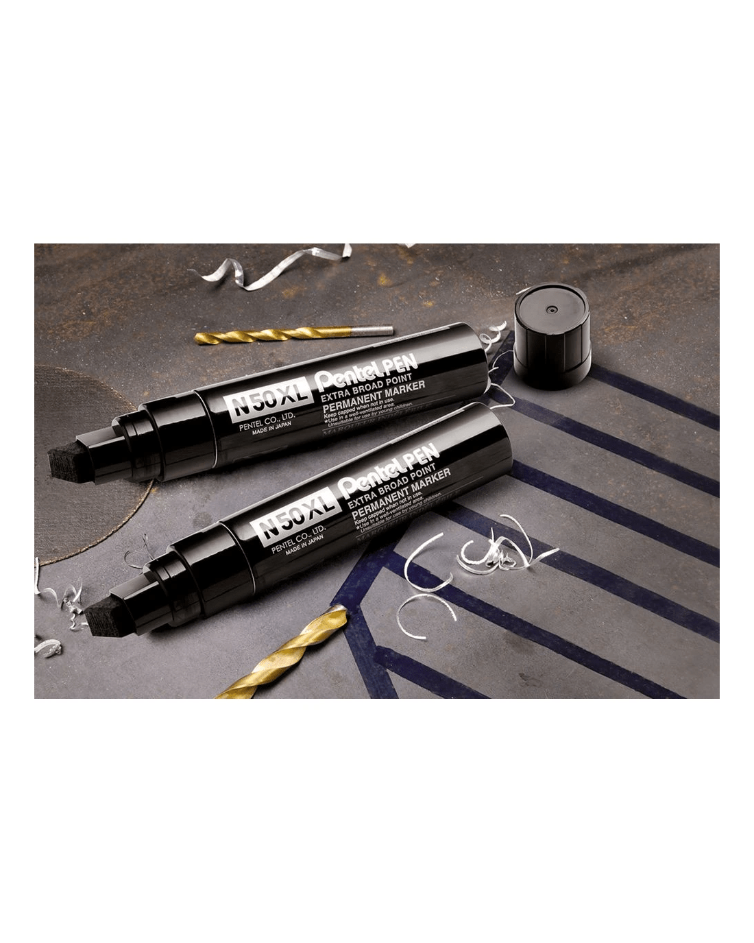 This Pentel jumbo permanent marker set includes two black markers with a broad chisel tip for bold lines between 10 mm and 18 mm. Each marker features a durable aluminium barrel and bonded fibre tip designed to perform under pressure. Plus, the permanent ink writes on almost any surface and resists water and ethanol, making it ideal for industrial and lab use.