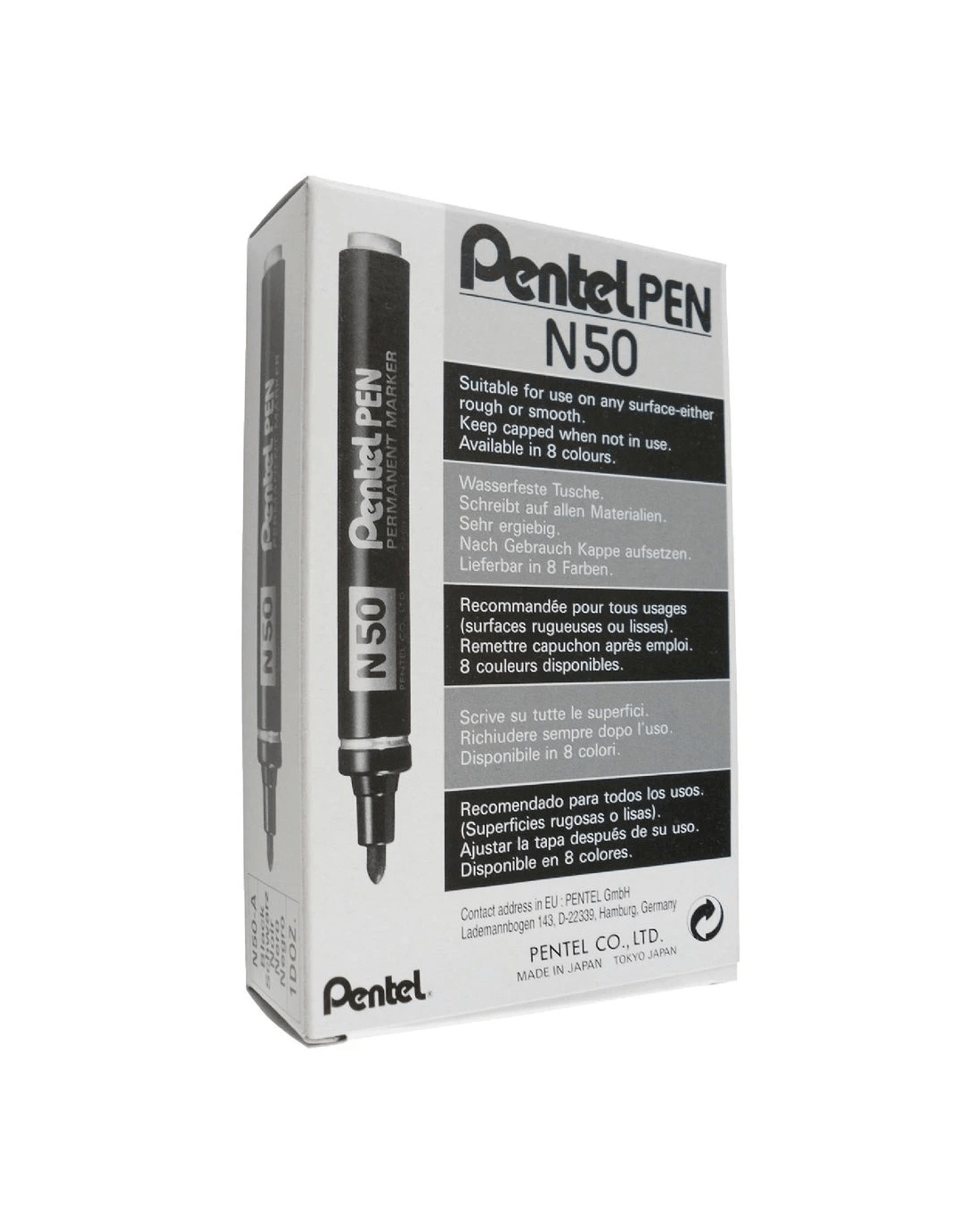 This Pentel N50 Permanent Marker has a hard-wearing fibre tip protected by a vapour sealed cap to ensure the tip stays moist. The 1.5 mm bullet nib lets you draw detailed lines and is ideal for writing. It has permanent, waterproof ink which dries instantly on the page.