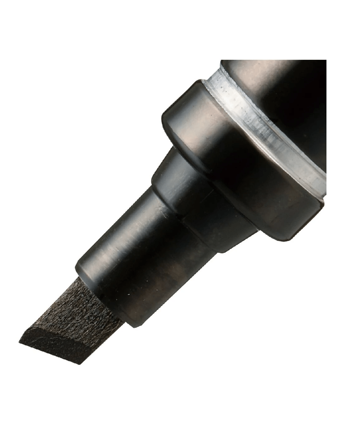 This Pentel N60 Marker has a large capacity and a bonded fibre tip, making it a long-lasting option. The ink is permanent, waterproof and the 5.5 mm nib can be used to write on almost any surface type including metal, plastic, wood, and cardboard. The robust aluminium barrel is comfortable to hold and can write for up to 1 km.