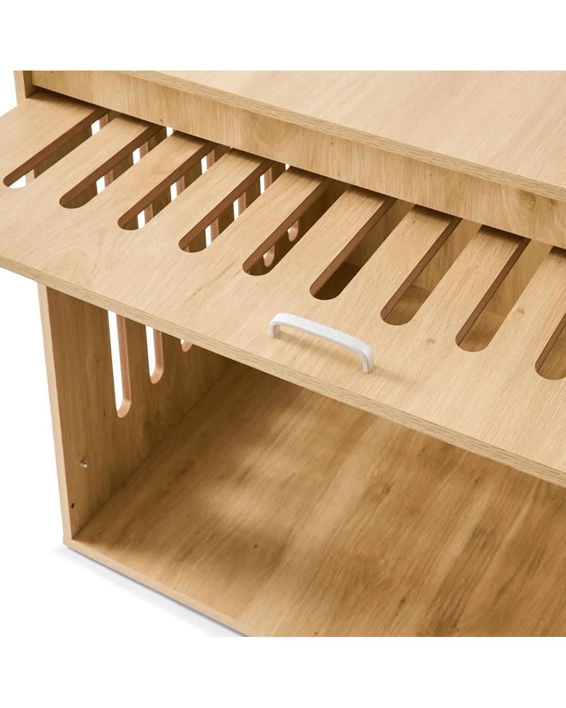 Finish: The warm oak wood-look finish lends a timeless appeal, making it suitable for both classic and contemporary interiors.