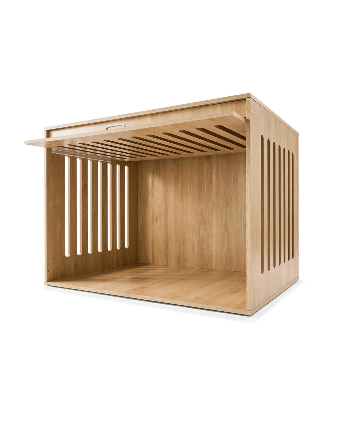 Add a touch of functional elegance to your space with the Pet Crate Wooden Oak, designed to blend seamlessly with your home decor while keeping your pet comfortable and secure.