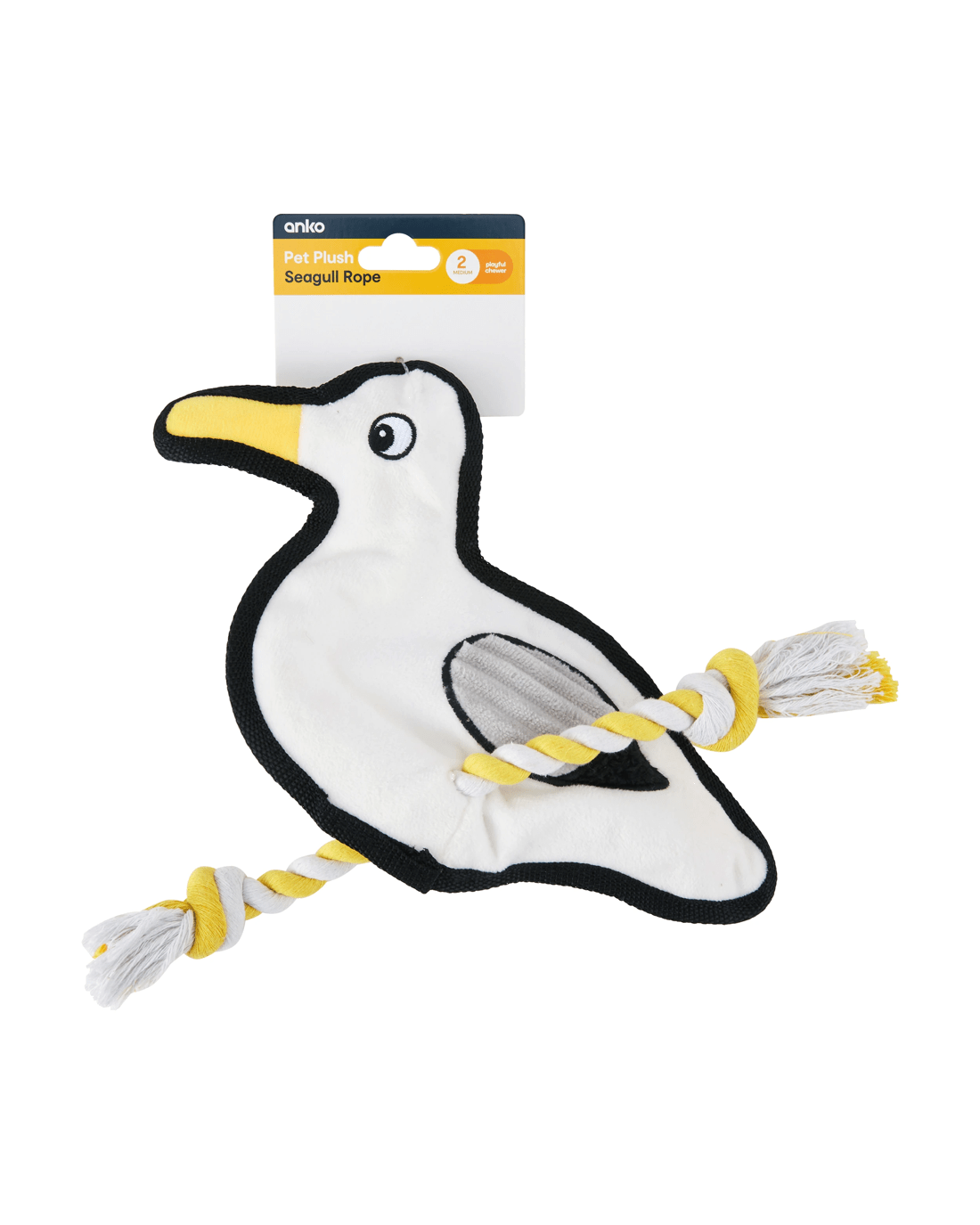 Treat your furry friend to fun with the Pet Plush Seagull Rope ? perfect for tugging, tossing and cuddling. Durable yet soft, it?s great for interactive play.