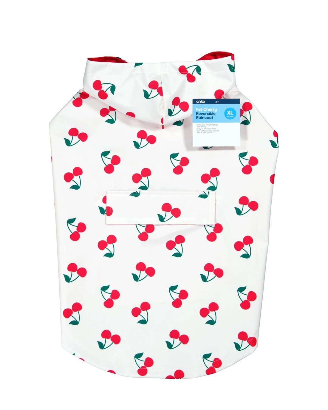 Dress your pet in playful charm with this Pet Reversible Cherry Raincoat. Its adorable design adds fun to every walk while keeping your furry friend cosy and stylish.