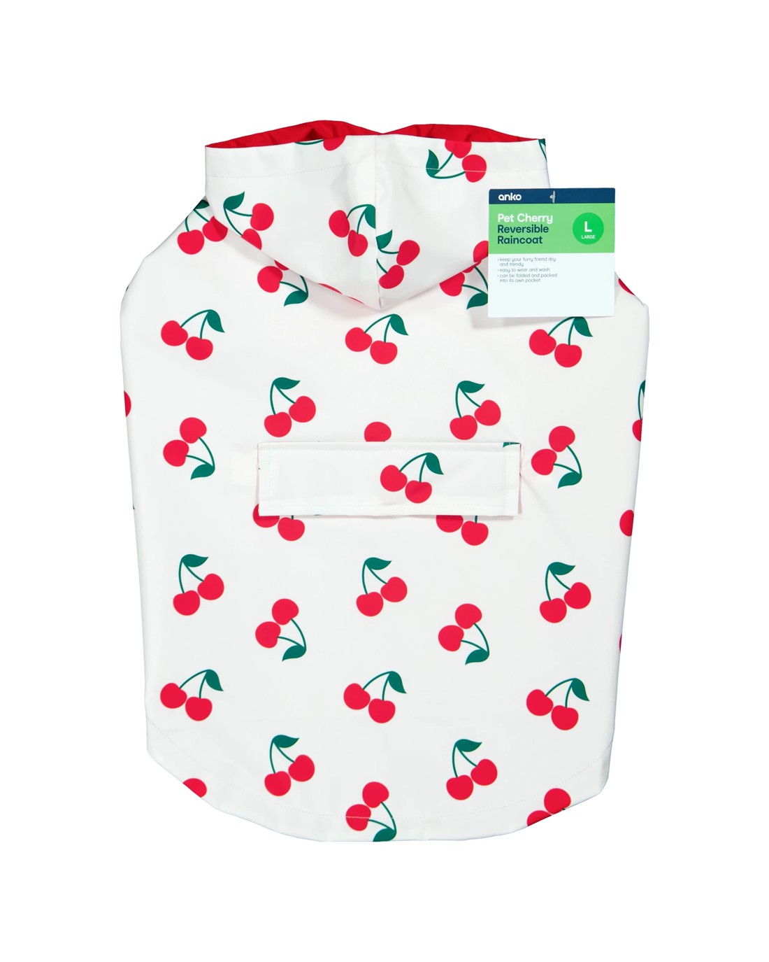 Dress your pet in playful charm with this Pet Reversible Cherry Raincoat. Its adorable design adds fun to every walk while keeping your furry friend cosy and stylish.