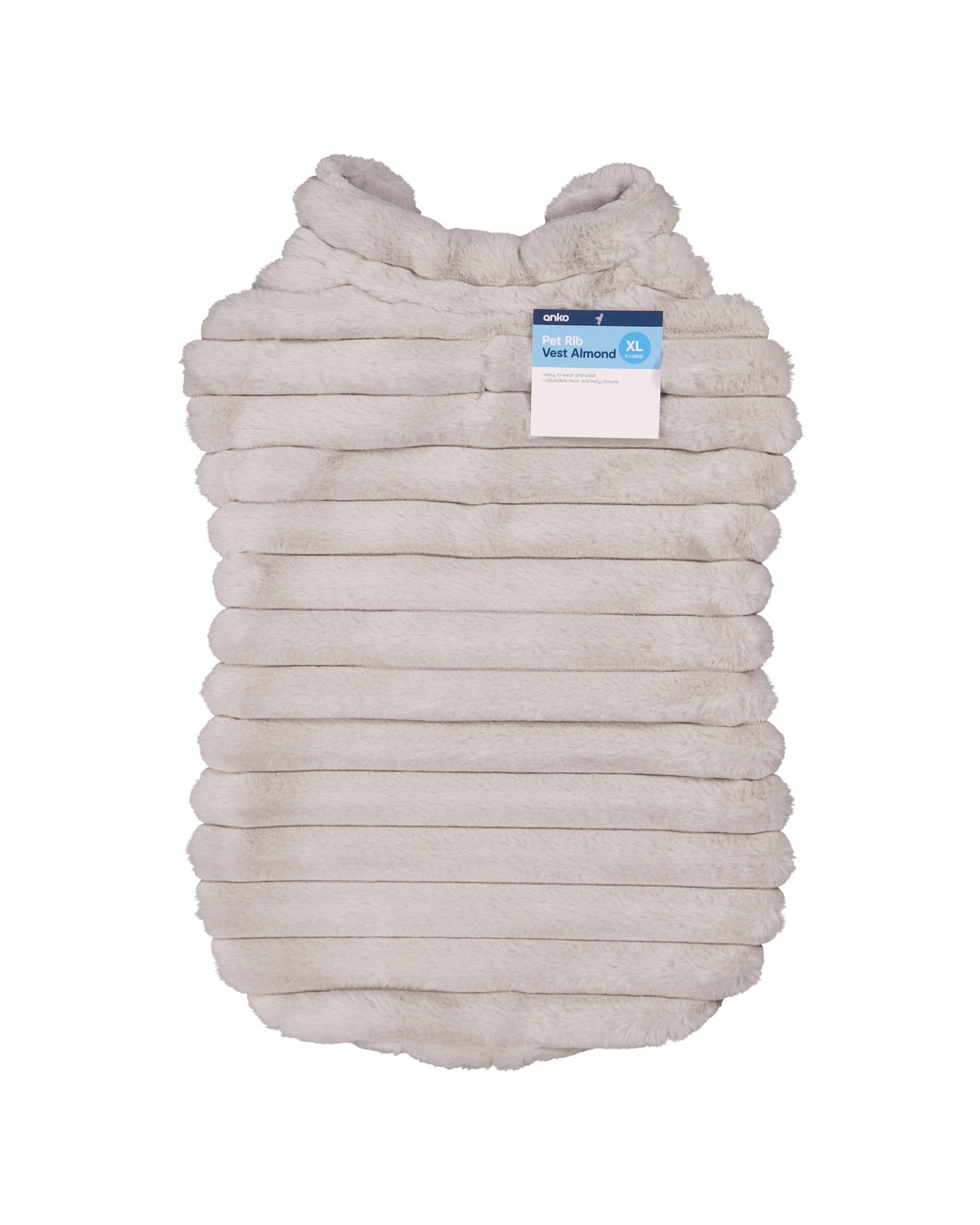 Keep your pet cosy with the Pet Ribbed Vest Almond, offering warmth and style for cooler days - designed for comfort and a secure fit.