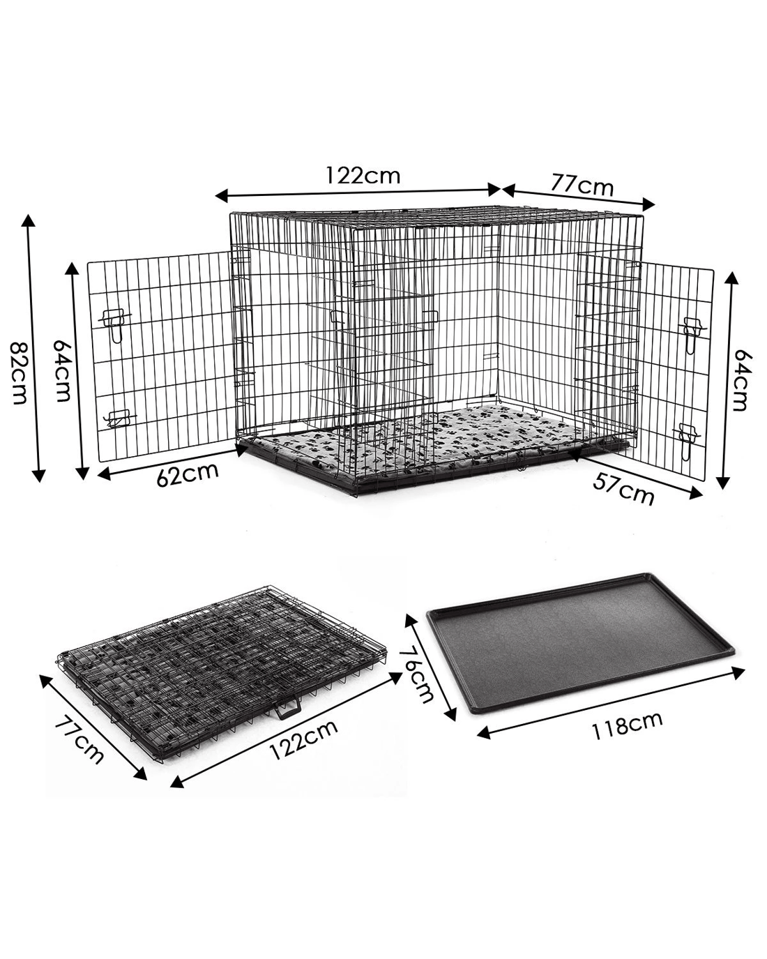 Keep your pets happy and safe in this Extra Large 48” Collapsible Dog Crate! This crate with fully metal construction has two large doors for easy access and is collapsible for easy storage. It also has a removable heavy duty ABS tray for easy cleaning. Get your pet used to being crated with this roomy crate. Add in a soft cushion and plenty of fun toys - your pet will soon learn to love the crate and will be content to stay in it for long periods of time, making it convenient for you to leave the house without worrying about leaving them alone at home! This crate is perfect for indoor and outdoor use or even to take with you on travels as it can be folded down flat in just a couple of minutes, plus it's easy to assemble and store. Ideal for large sized dogs or cats. Order your Extra Large 48” Collapsible Dog Crate today!