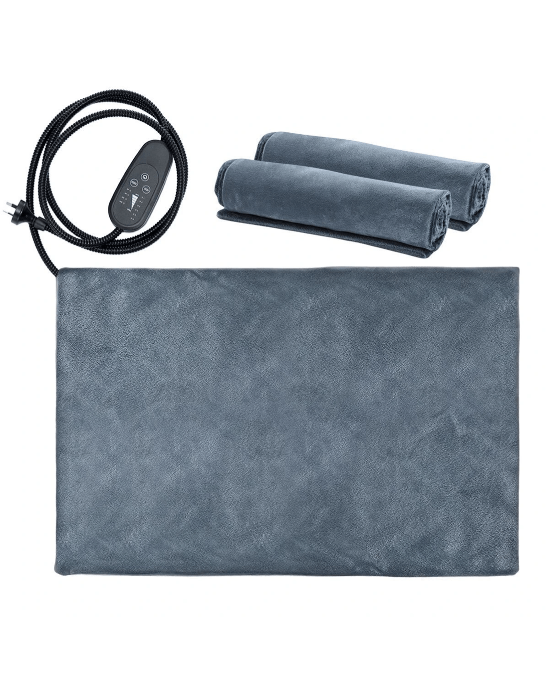 Offer unparalleled comfort and warmth for your pets during the colder months with this electric pet heater bed. At an impressive size of 90x60cm, our dog bed heater is perfect for dogs and cats alike. It comes with two grey crystal ultra-soft cloth covers that ensure a comforting touch for your pet’s skin. Moreover, our pet heater pad features an IC control box with an LED indication, allowing you to monitor temperature settings at a glance. Inside the pad lies a thermostat for an accurate temperature display. Your pets can enjoy the warmth at six adjustable temperature levels, ranging from 30°C to 55°C. Thanks to a 55°C thermal protector, the pet heating mat protects against overheating for your pet’s safety. Besides, a flexible timer provides added control with customisable heat-up times of 4, 8, 12, and 24 hours. It is an ideal warming bed for pets of all life stages, especially those needing extra care like senior, arthritic, newborn, pregnant, or recovering pets.