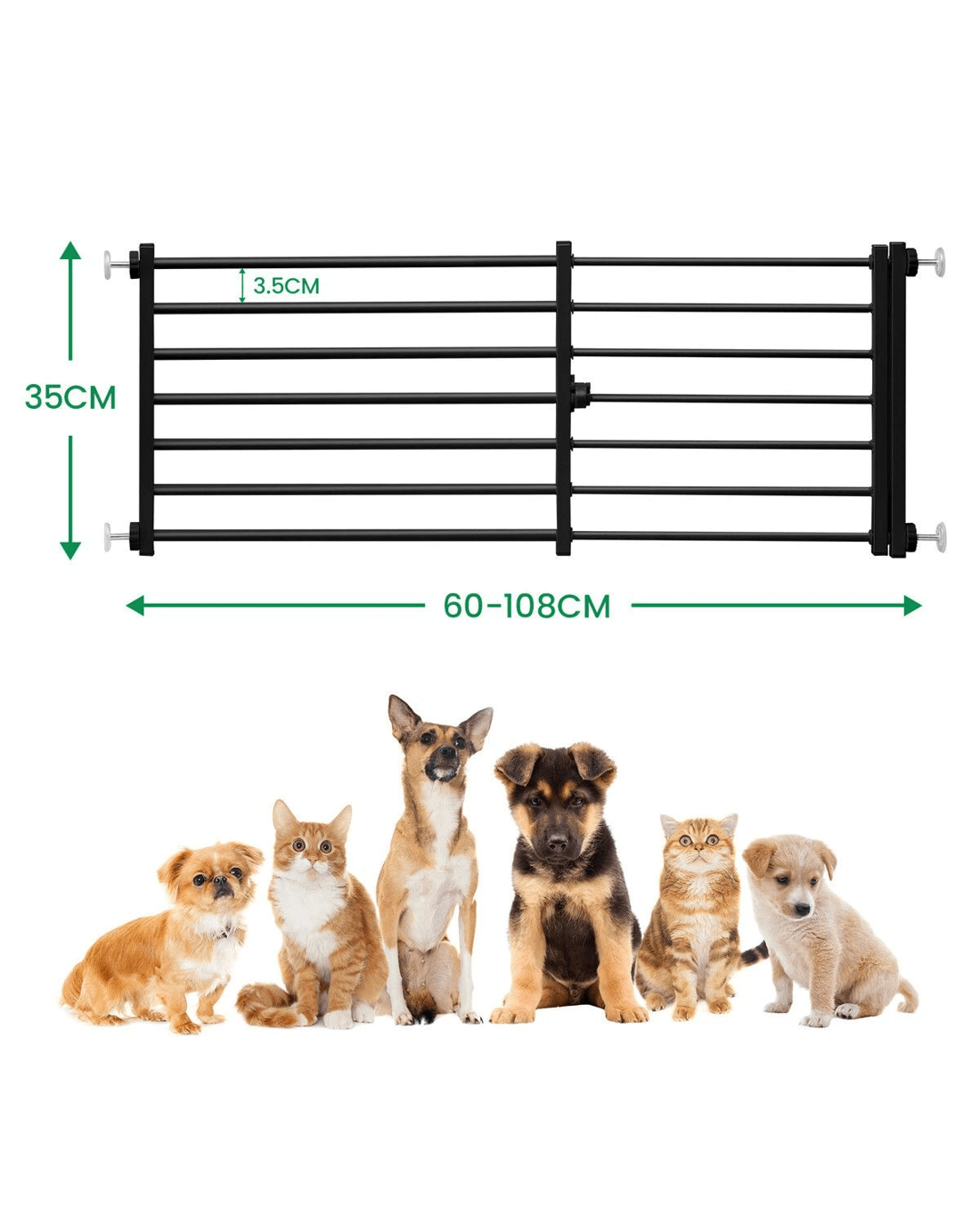 - Easy to Step Over: This pet gate has a height of 35 cm, allowing easy access for adults while keeping your furry friends in the designated area. Perfect for families with small and medium-sized pets.
