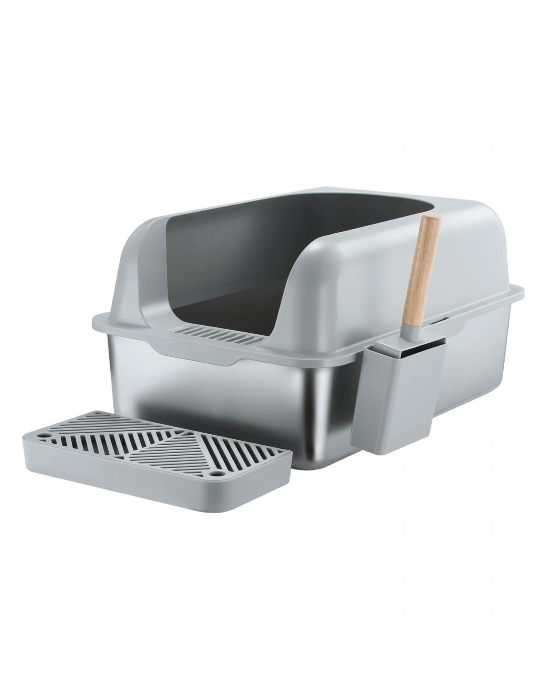 - Easier Maintenance: It comes with a litter scoop and a wall mountable scoop holder to make cleaning easier. The XL stainless steel cat litter box can hold up to 20 litres of litter, so there's no more worrying about changing cat litter frequently, even when you go out to work or travel.