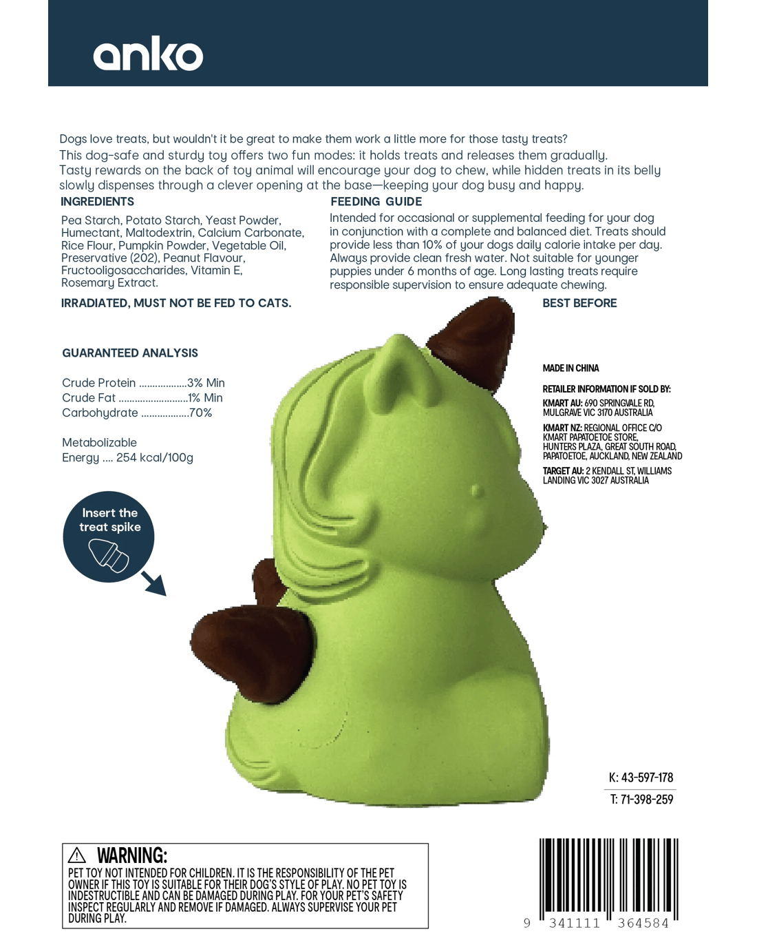 - Net weight: 16g (3 treat spikes) (Approx.)