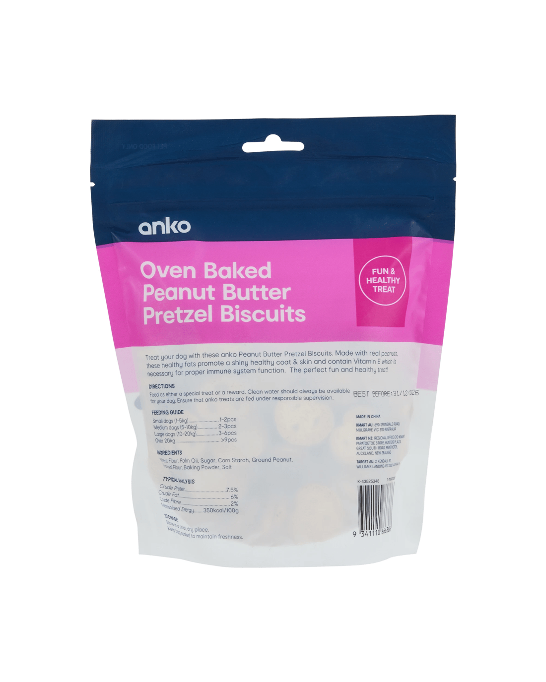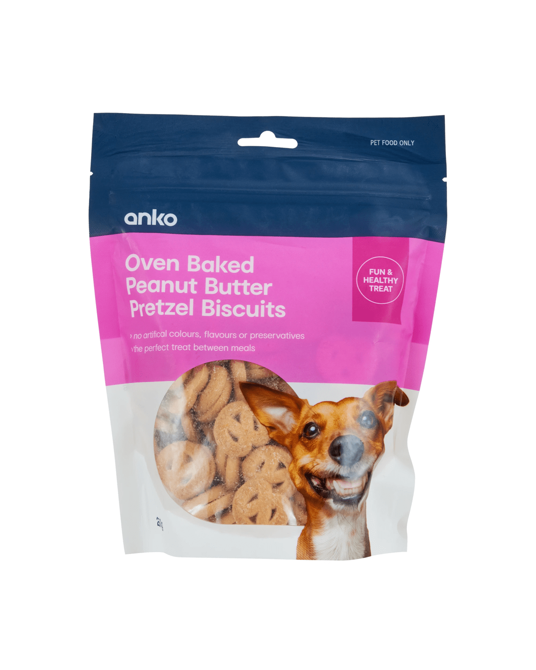 Treat your dog with anko Peanut Butter Pretzel Biscuits. Made with real peanuts, these healthy fats promote a shiny healthy coat & skin and contain vitamin E which is necessary for proper immune system function. The perfect fun and healthy treat!