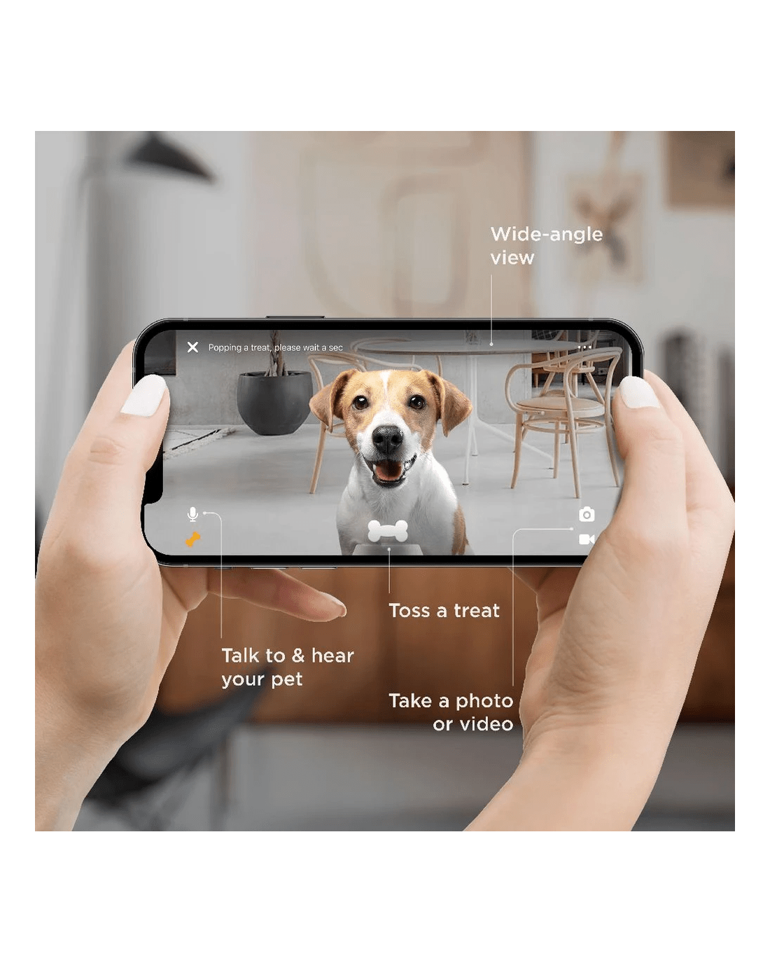 - Enjoy high-quality 2-way audio to talk to your pets and hear them bark or meow back.