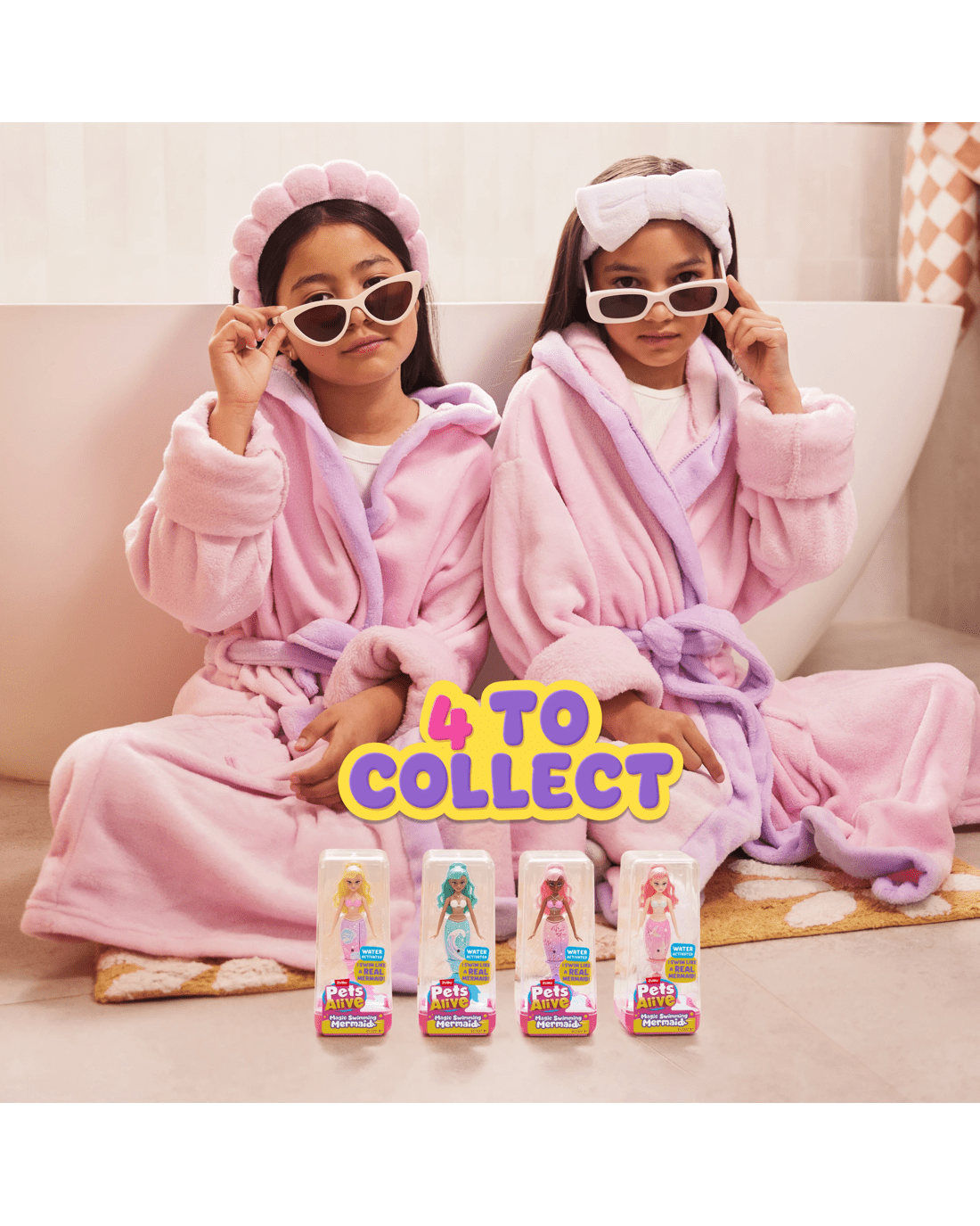 Make a splash with the Pets Alive Magic Swimming Mermaid by ZURU - the water-activated mermaid doll that swims like magic! Simply place her in water and watch her come alive with lifelike swimming motion. With moving parts and interactive water play, she's perfect for bath time, poolside fun or water table adventures. Each mermaid features a beautifully detailed design and colourful tail, bringing vibrant personality to every underwater story. With four unique mermaids to collect, kids will love discovering which character they get next. This robotic toy inspires imaginative play, encourages storytelling and adds a touch of fantasy to water playtime. Lightweight and easy for little hands to use, it's ideal for children and toddlers aged 3+. Dive into magical fun and collect them all!