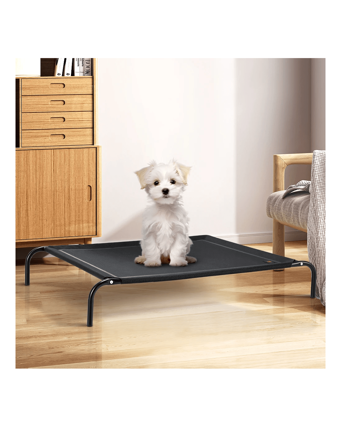 Sold by Kamprad's Oikos 1943Petzly Cooling Elevated Pet Dog Bed for Medium Dog Washable Breathable Mesh - Black