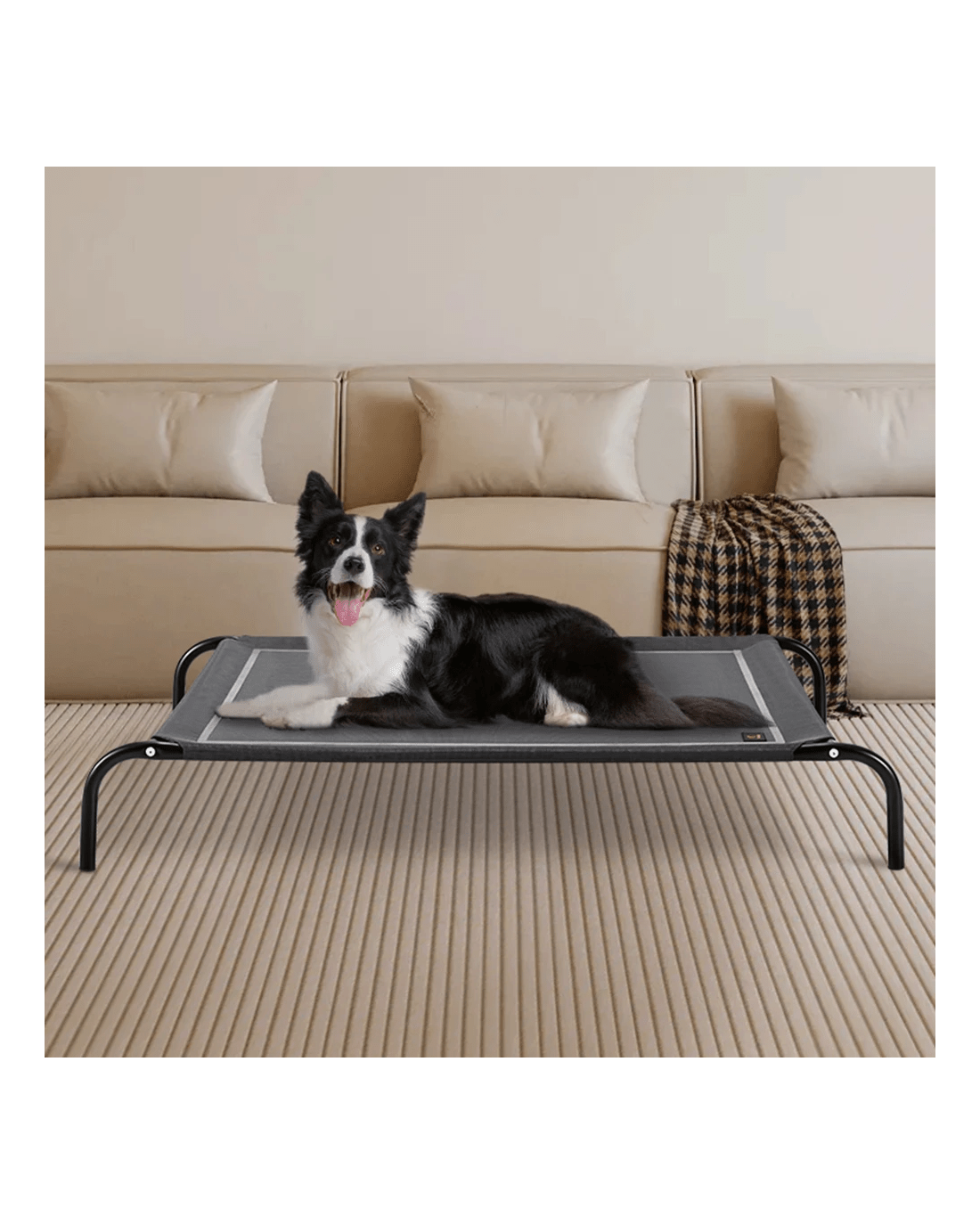 Ready to elevate your pet's comfort to new heights? Say goodbye to uncomfortable floors and meet your optimal choice-Petzly Elevated Pet Bed. Whether lounging indoors or adventuring in the great outdoors, provide your furry friend with a cozy resting spot they'll love. Featuring breathable mesh fabric, our pet bed keeps your pet cool while its elevated 20cm height protects it from dirt, bugs, and dampness, whether indoors or outdoors. Built with a sturdy iron frame, it can support pets up to 60kg, ensuring stability and durability. Textilene fabric boasts high tensile strength and resistance to UV rays and deformation, promising long-lasting use and easy cleaning. Assembly is simple with the spring-button lock mechanism and toolkit included. Lightweight at 2.6kg and collapsible, it's effortless to store and transport. With its sleek grey design, our pet bed provides both comfort and style for your furry friend.