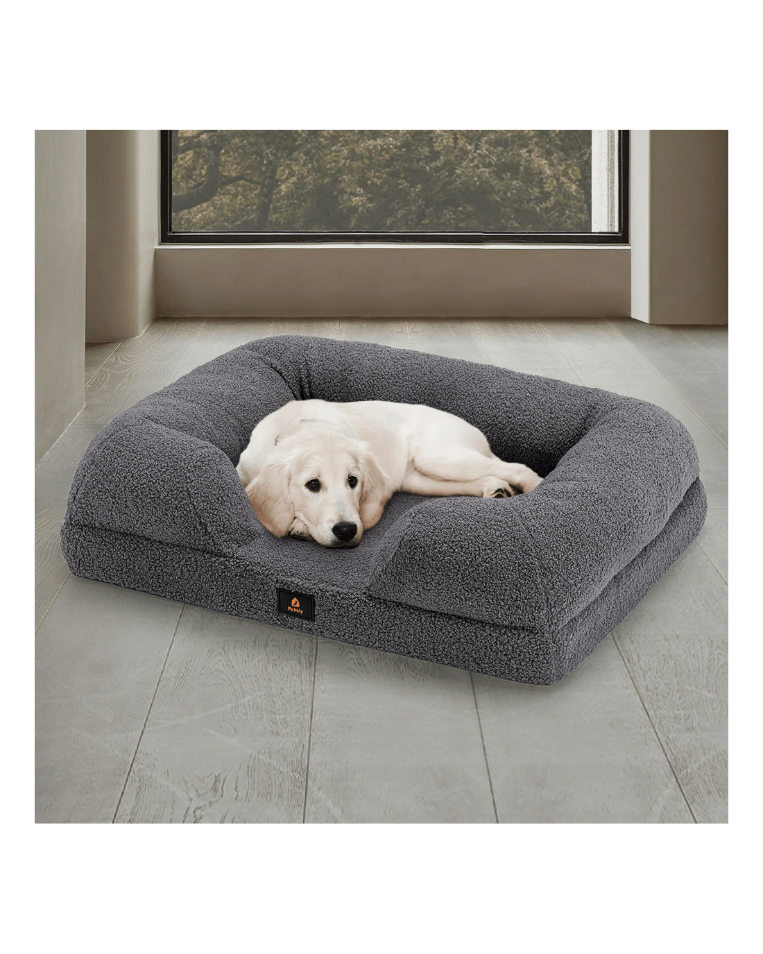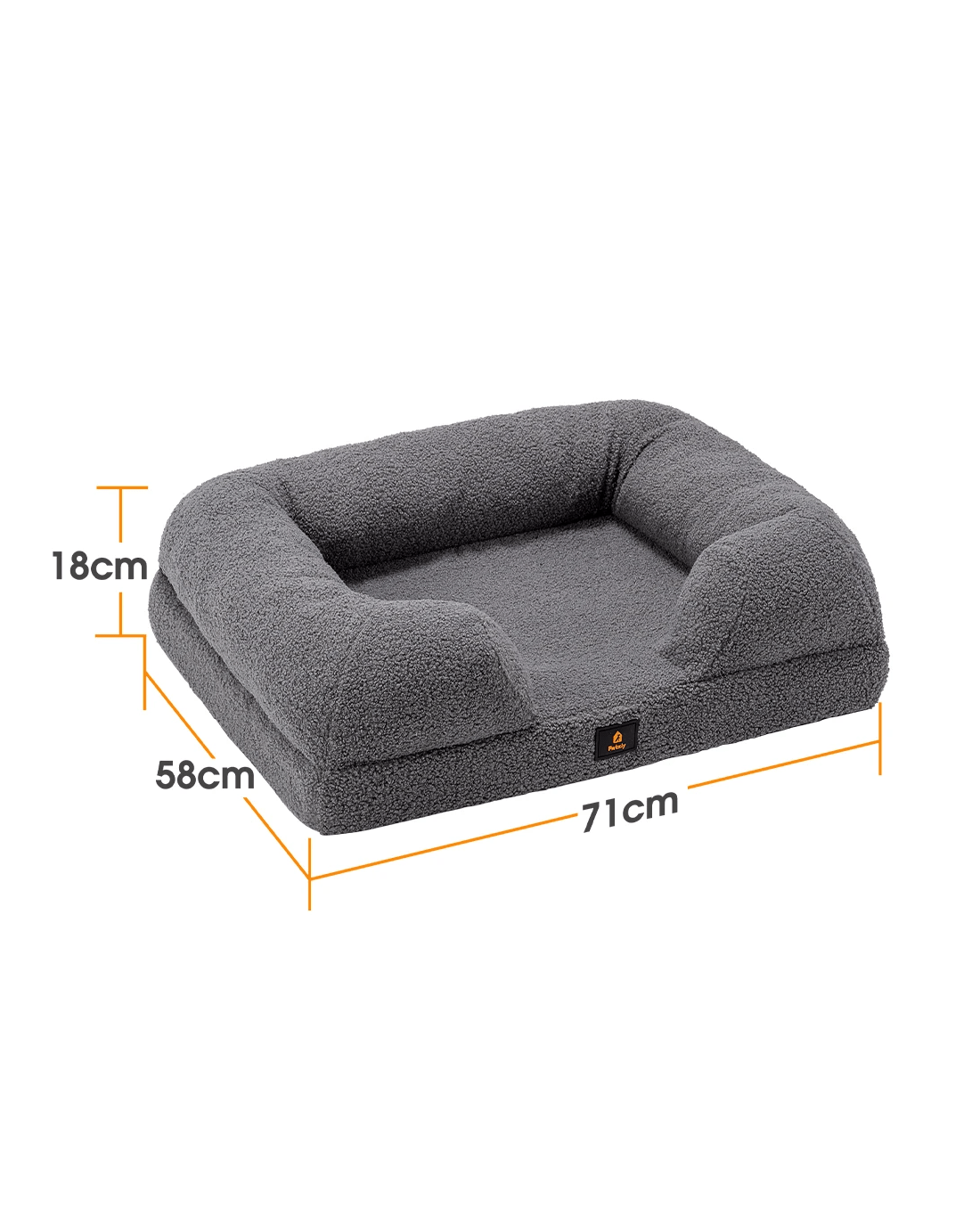 Petzly Memory Foam Dog Bed Pet Sofa Calming Bed Washable Removable - Grey