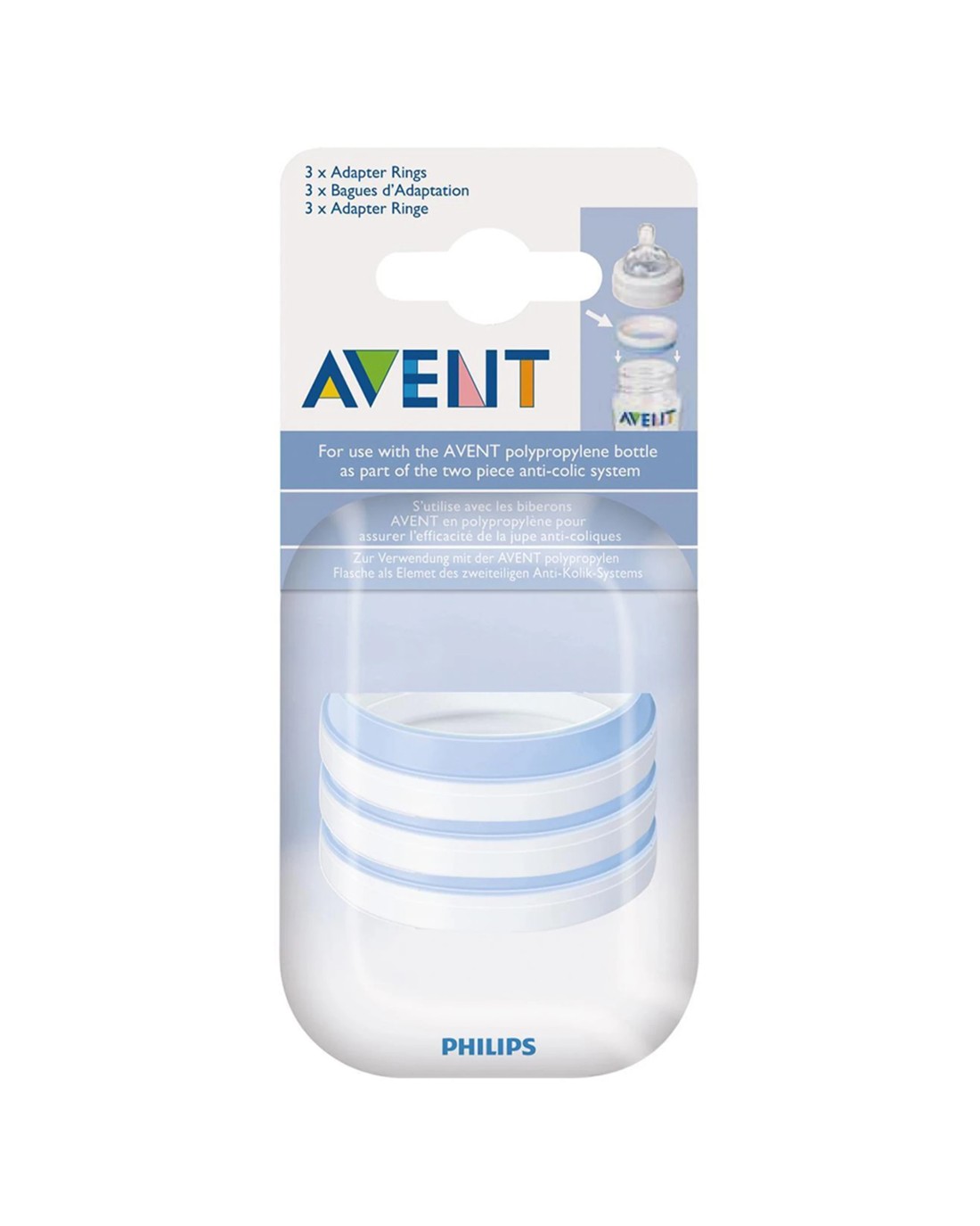 Philips Avent Classic PP Bottle Adaptor Rings 3PK Replacement Teat Secure Hold - Plain