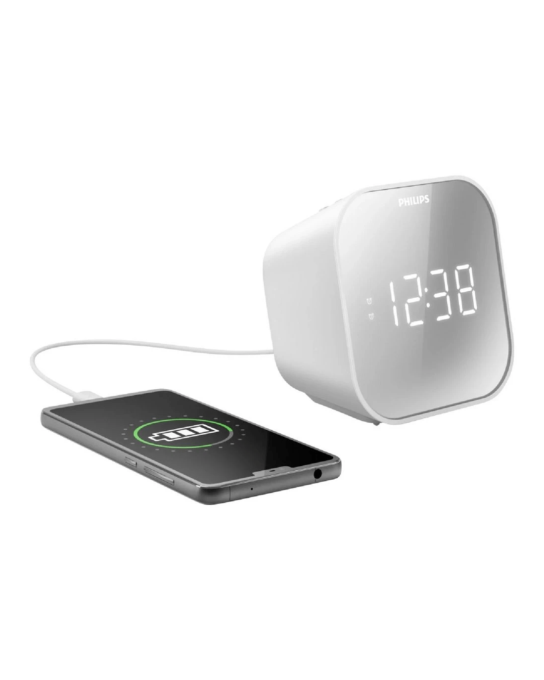 Get up ready to rock with this FM Clock Radio from Philips. It's got a charging port that will charge your mobile device while you sleep, and it can wake you with a gently rising alarm tone or radio station. Plus, there’s also a Sleep Timer, so you can fall asleep listening to the radio too.