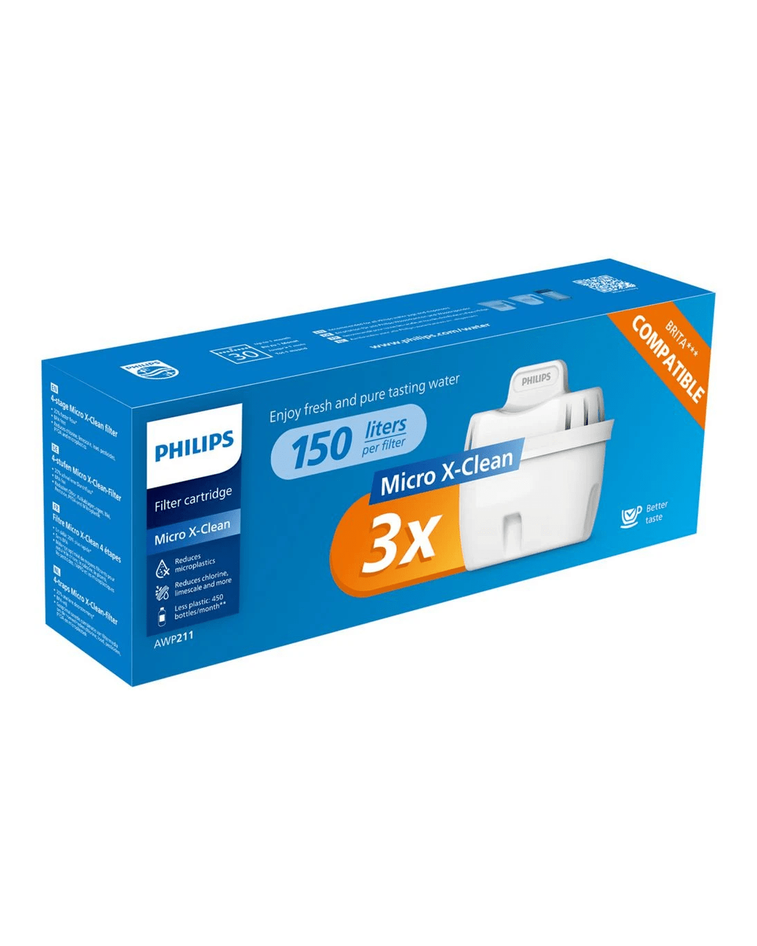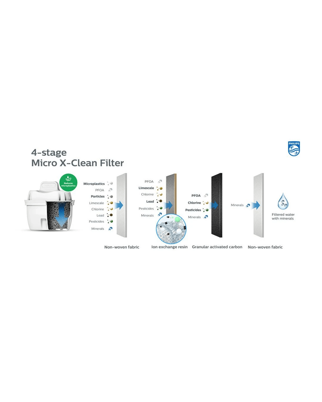 These Philips Micro X-Clean Jug Filters let you keep getting crisp and pure-tasting water from your Philips Micro X Jug. They reduce chlorine, limescale, heavy metals and emerging contaminants such as microplastics and PFOA.*